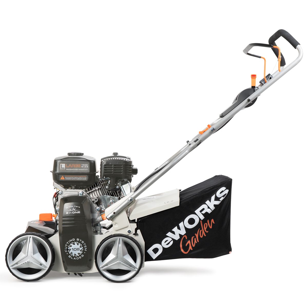 - В комплект входит тканевый травосборник увеличенного объема - 45 л.