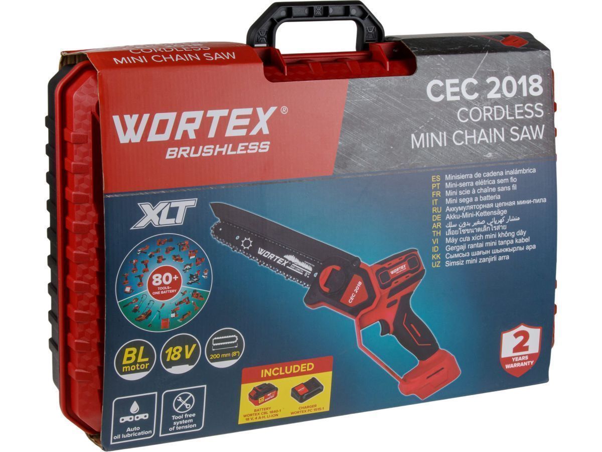 Аккум. мини-пила CEC 2018 в чем. ALL1 XLT SET БЕСЩЕТ., 18 В, 1АКБ 4,0 А/ч, шина 20 см (8"), 1/4", 1.3 мм, WORTEX 2329052