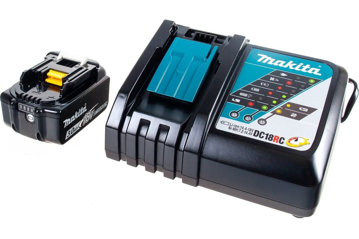 Набор Makita 191A25-2 включает в себя аккумулятор Makita BL1830B и зарядное устройство DC18RC.