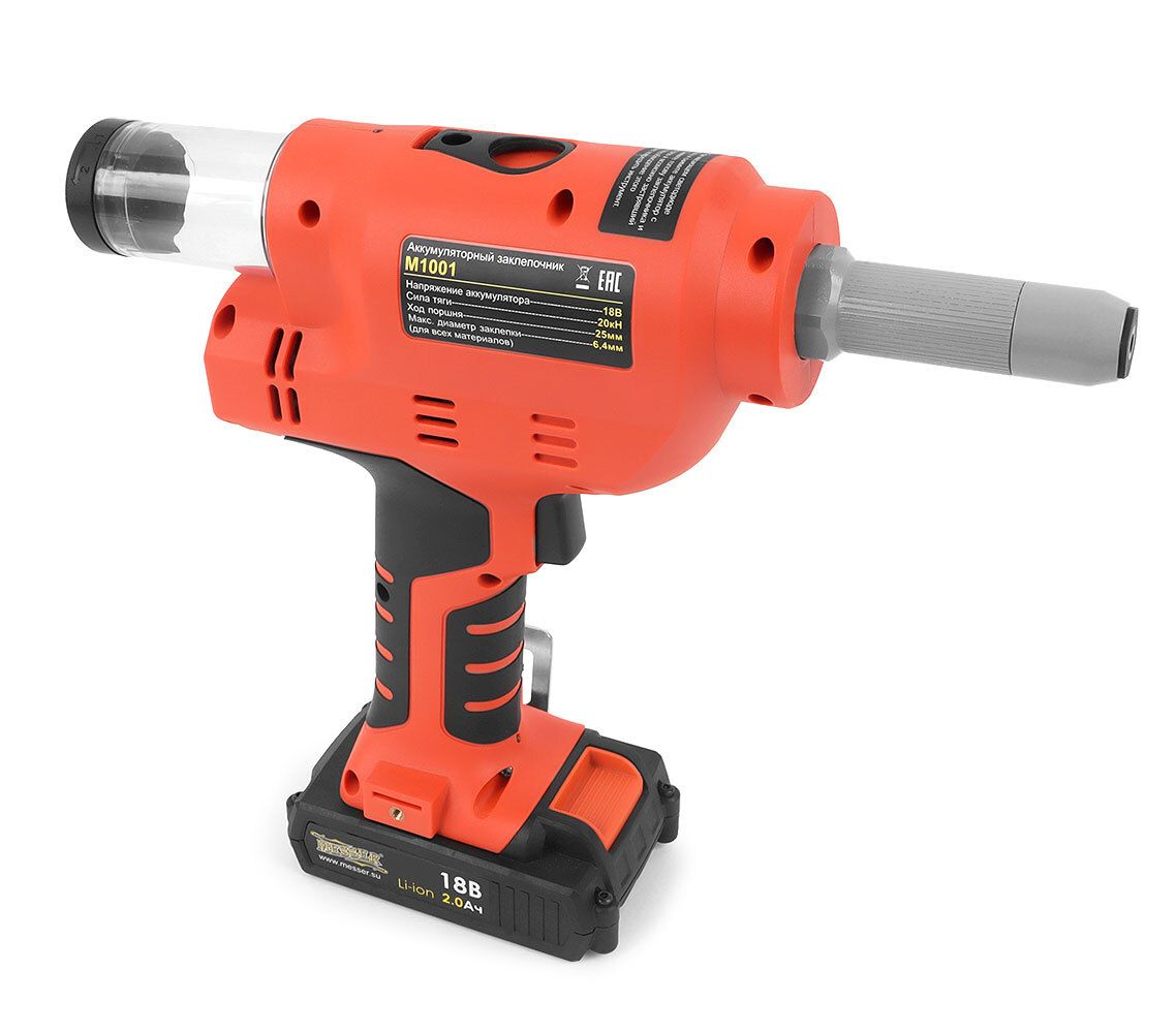 - яркий представитель современных профессиональных аккумуляторных инструментов для установки вытяжных металлических заклепок диаметром от 3,2 до 6,4 мм.