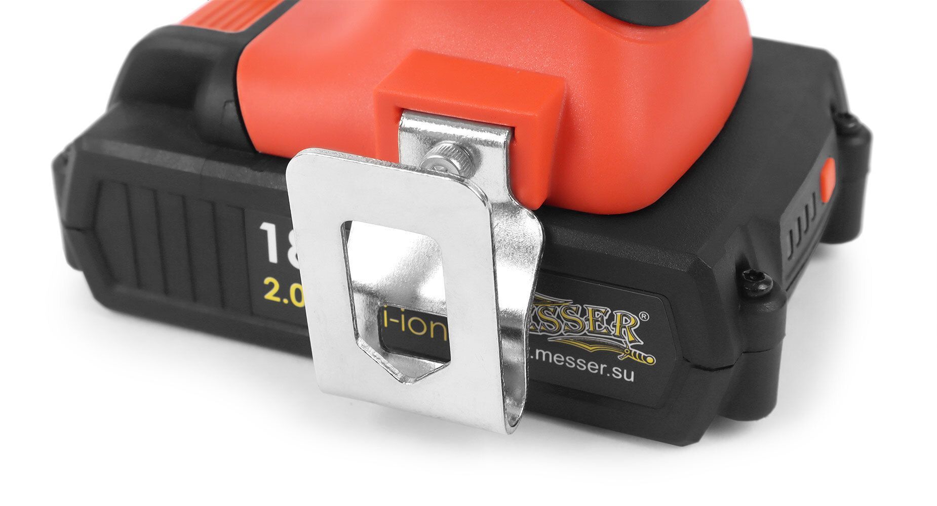 Заклепочник удобен в работе – имеет скобу для крепления на поясе оператора, кольцо для подвески инструмента, светодиодную подсветку рабочей зоны, наличие световой индикации позволяет контролировать степень разрядки аккумулятора.