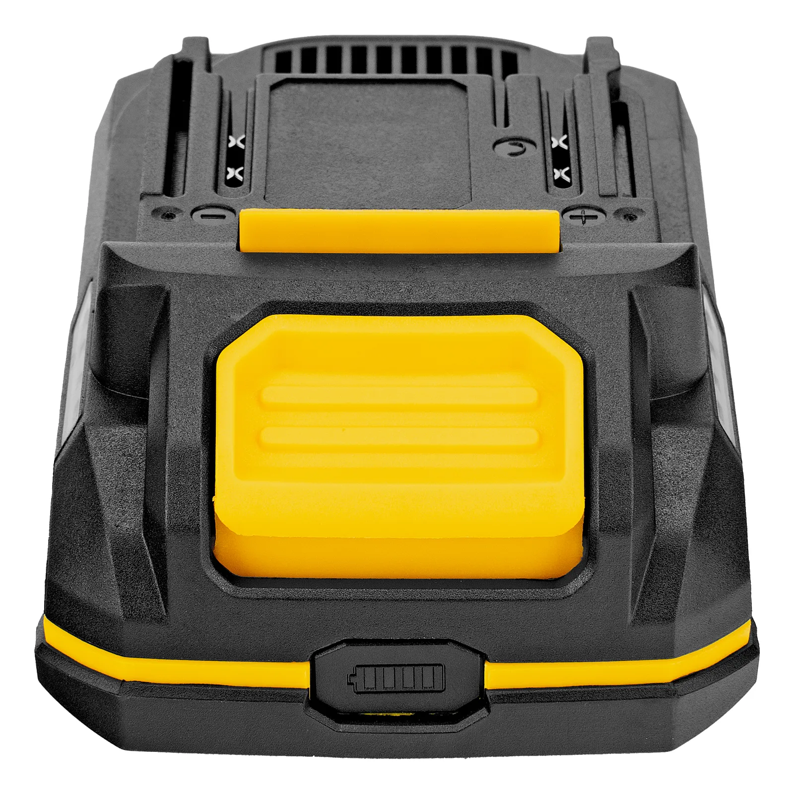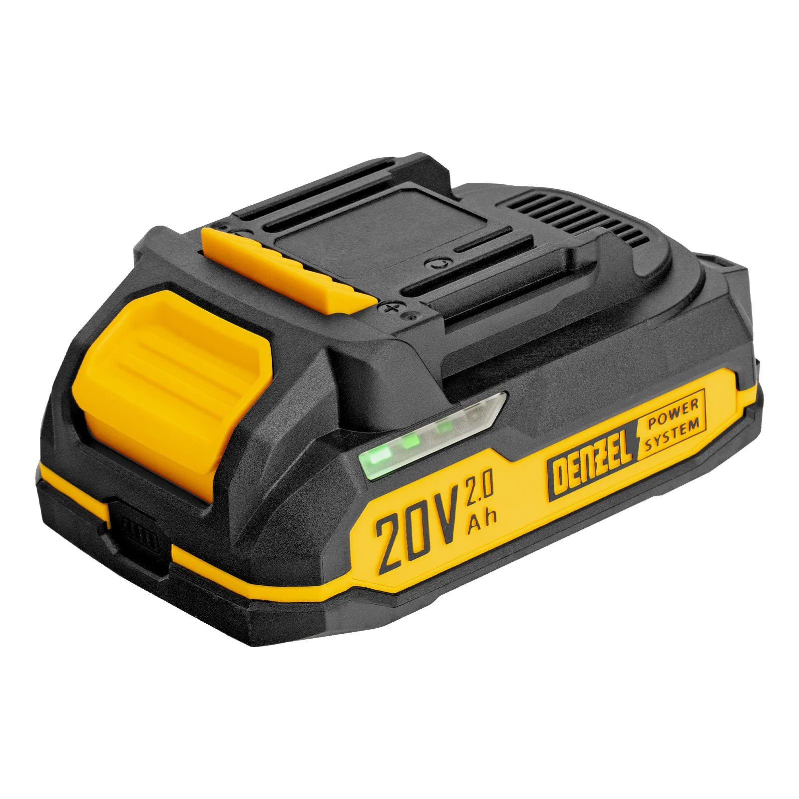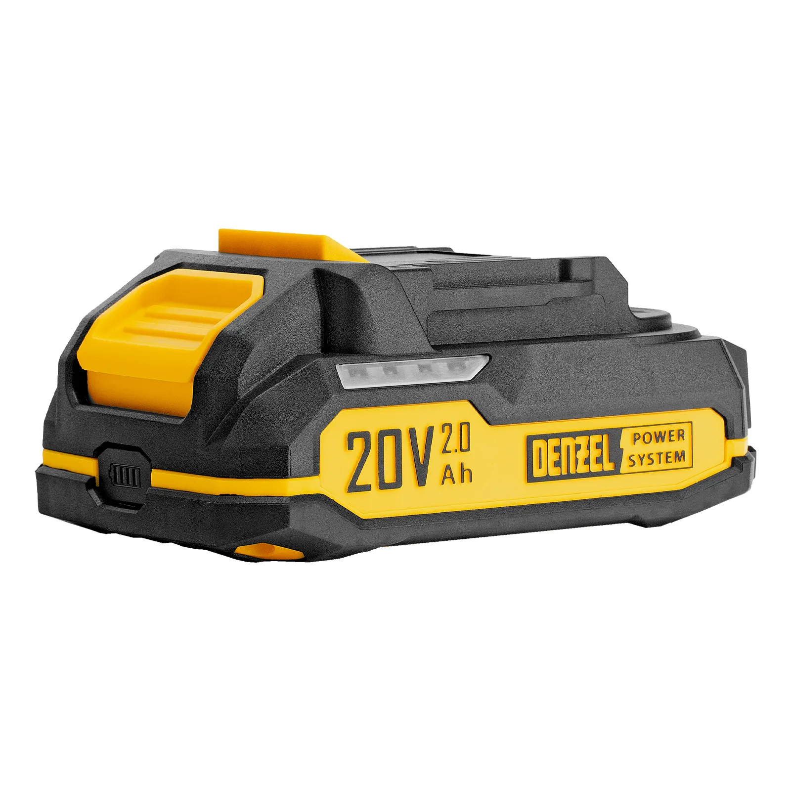 Батарея Li-Ion Denzel BH-20-2.0 номинальным напряжением 20 В и емкостью 2,0 А·ч обеспечивает работоспособность аккумуляторного инструмента. Подходит для всех инструментов единой платформы Denzel Power System 20V.