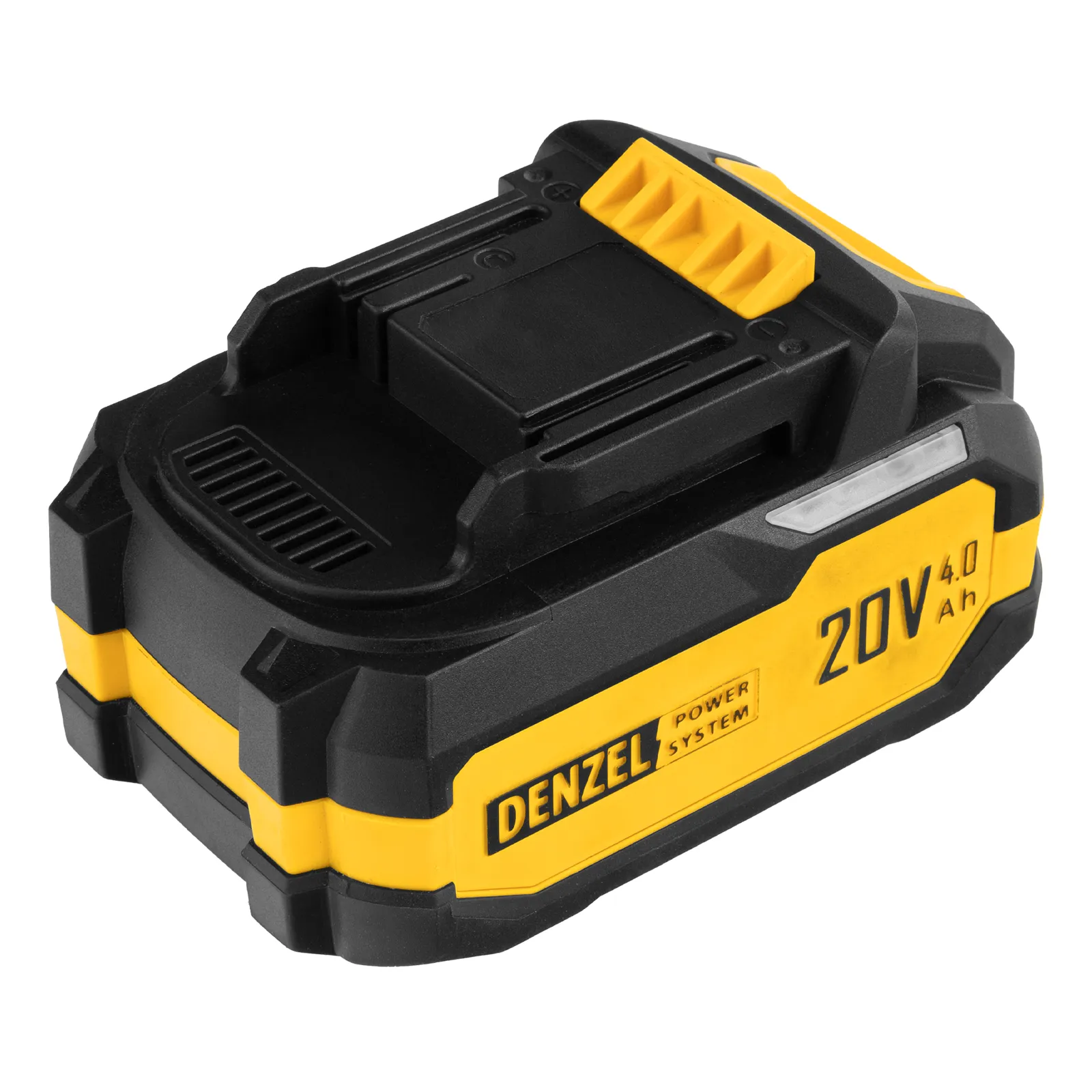 Батарея Li-Ion Denzel BH-20-4.0 номинальным напряжением 20 В и емкостью 4,0 А·ч обеспечивает работоспособность аккумуляторного инструмента. Подходит для всех инструментов единой платформы Denzel Power System 20V.