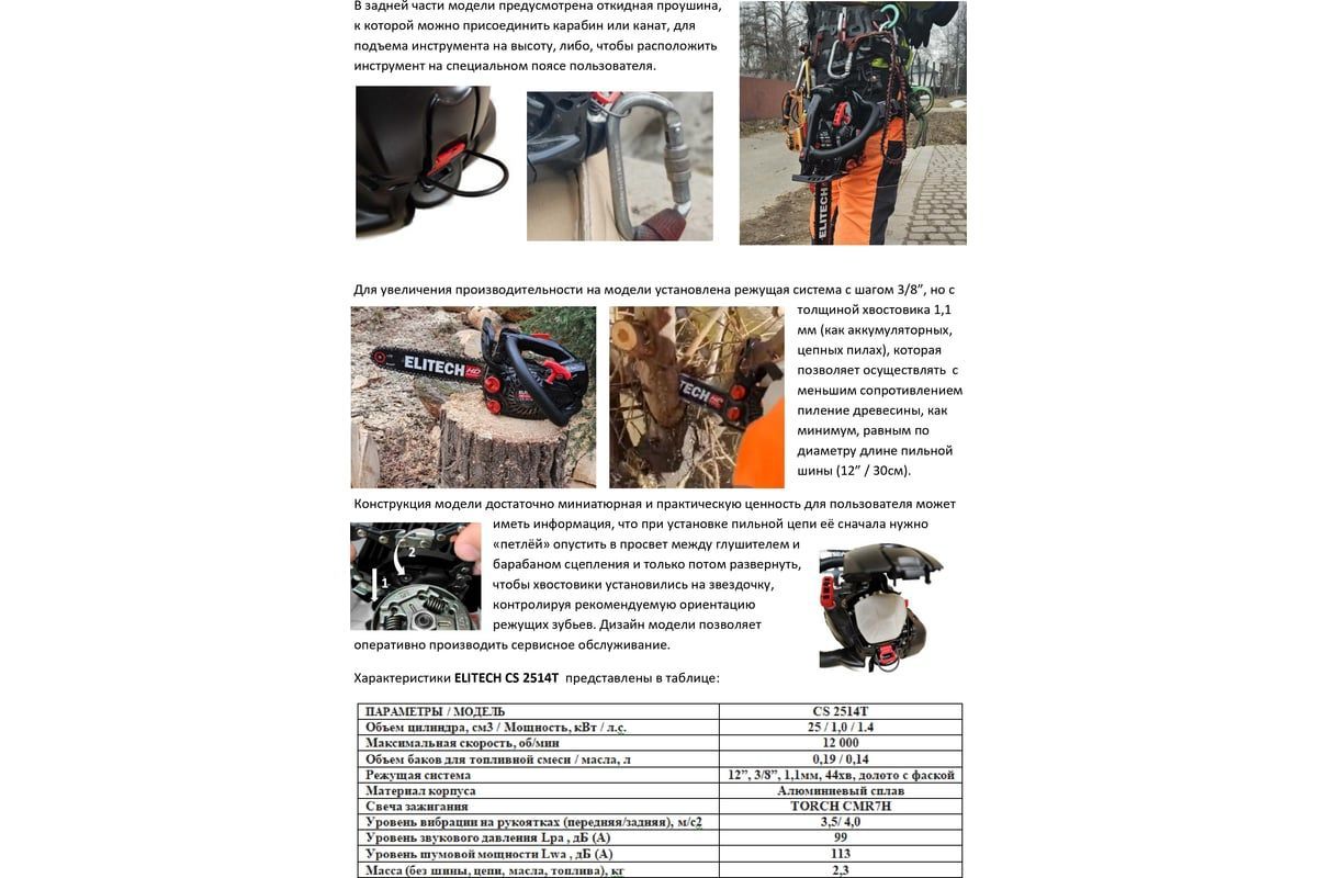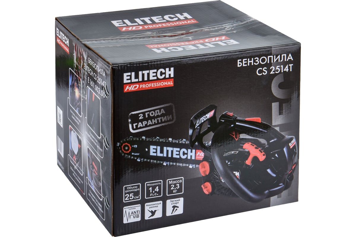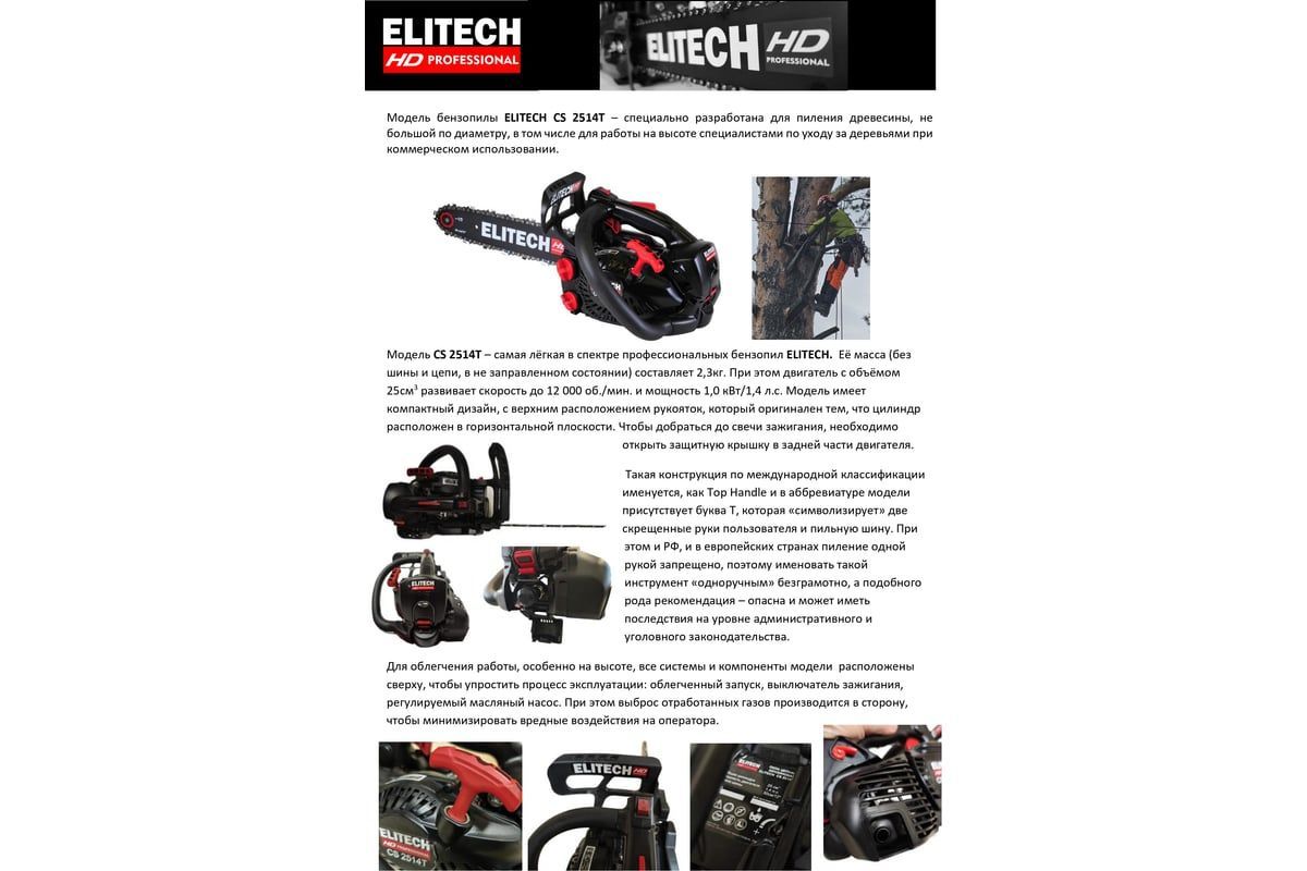 Бензопила,25см3,1.0кВт/1.2л.с.,шина30см,3200-12700об/мин,шаг-3/8",паз-1.1мм,т/б-0.19л, 2.6 кг CS 2514T (E1611.003.00) ELITECH 205448