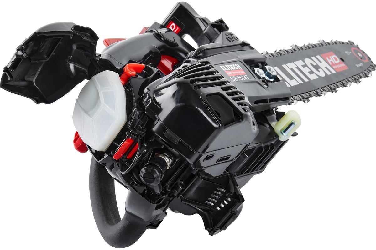 Бензиновая цепная пила Elitech CS 2514T мощностью 1,4 л.с. и с шиной длиной 30 см, предназначена для валки деревьев, обрезки веток и сучьев, раскряжевки и заготовки дров. Может применяться для плотницких работ, расчистки местности от кустарников и молодой поросли деревьев, и других хозяйственных работ, связанных с пилением древесины.