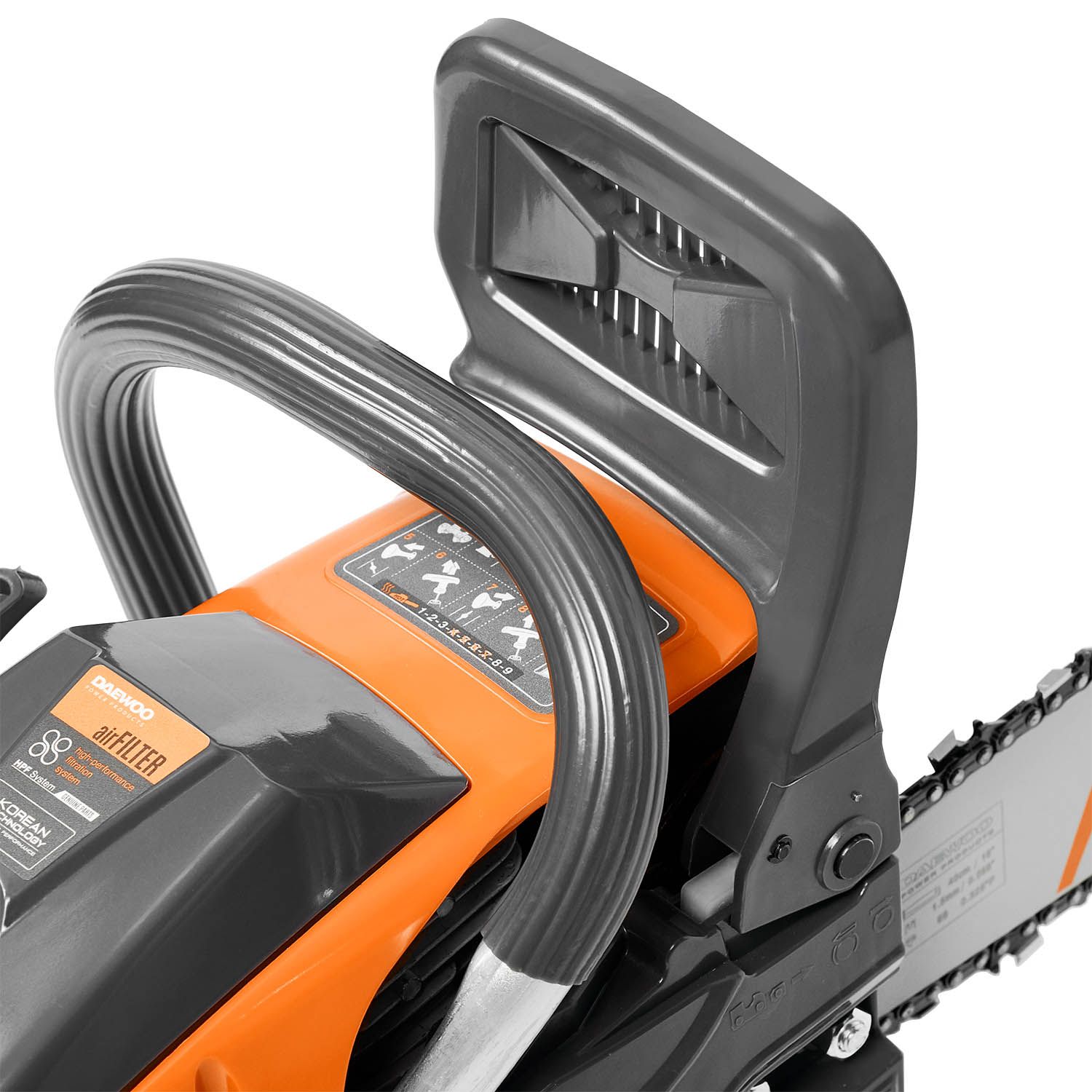 Механизм ленточного тормоза блокирует движение цепи в случае сильной отдачи, что снижает вероятность получения травм оператором.