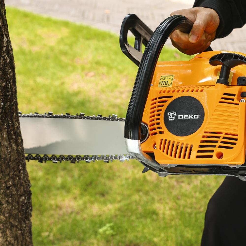 - Бензопила DEKO DKCHS 52-20 - это мощный и надежный инструмент для распила древесины, подойдет для ухода за деревьями на участке, а также для заготовки дров.