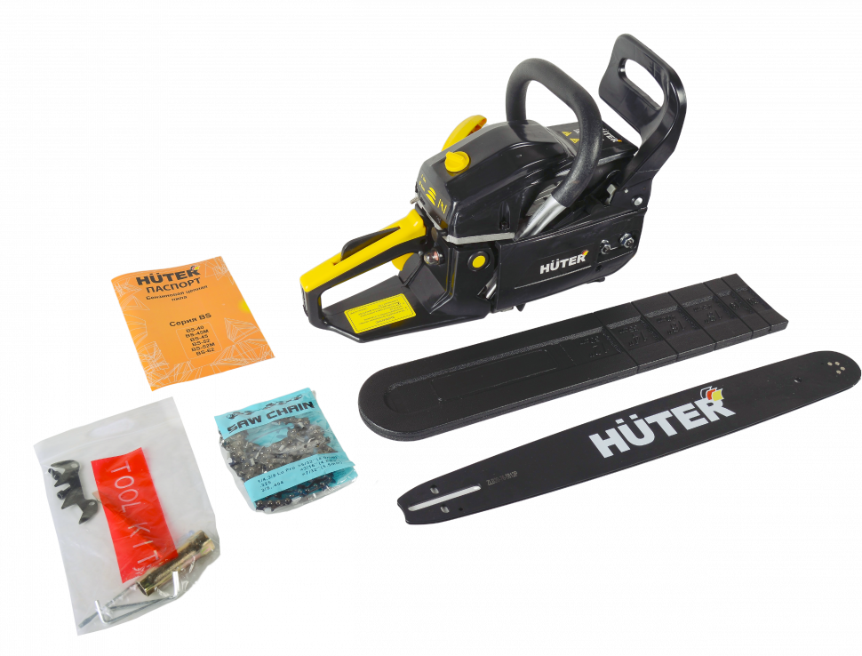 - Цепь и шина в комплекте.