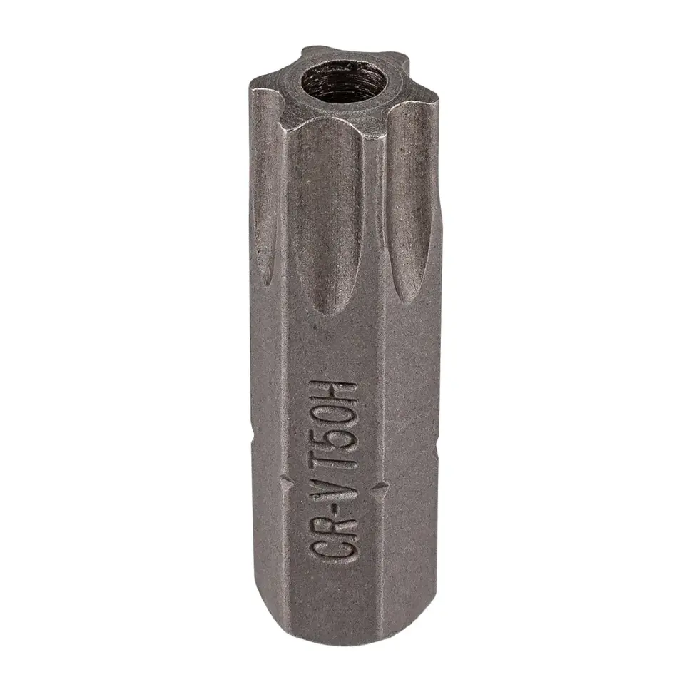 Бита TORX T50H×30 мм L с отверстием RockFORCE RF‑1573050 предназначена для работы с антивандальным крепежом формата TORX размера T50.