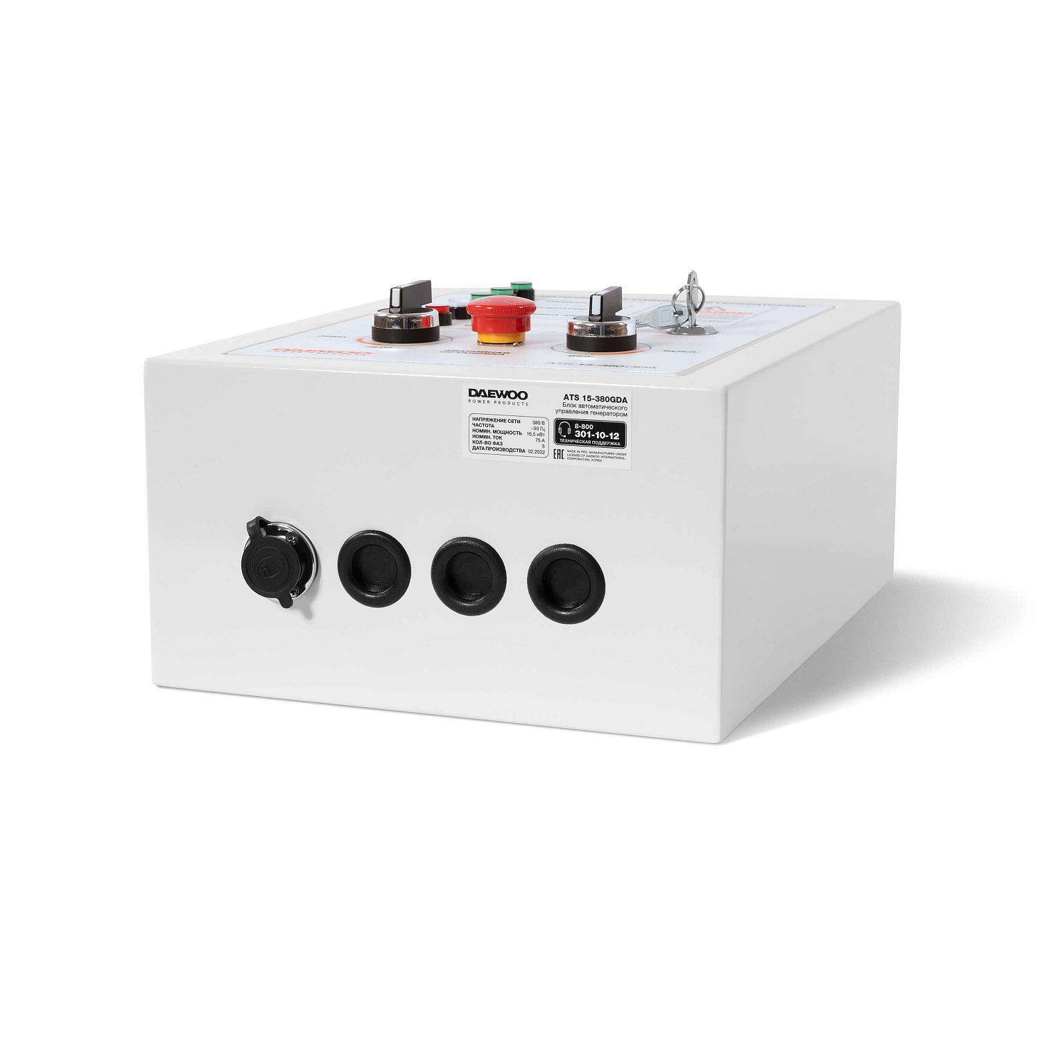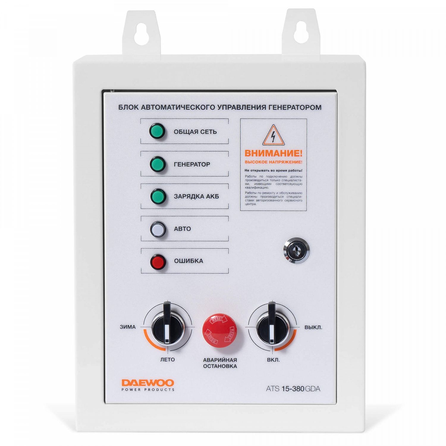 Блок управления генератором DAEWOO ATS 15-380 GDA обеспечивает автоматический запуск электростанции в случае падения напряжения в основной сети или прекращения подачи электроэнергии.
