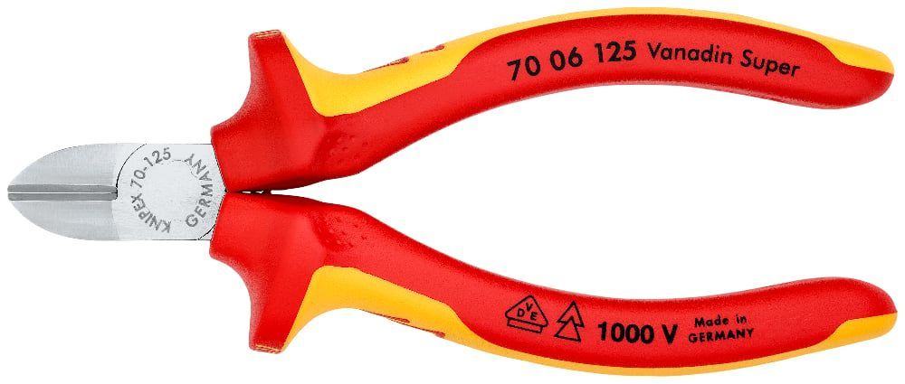 Бокорезы VDE 1000V,твёрдость кромок 62 HRC, хром., 2-комп. рукоятки KNIPEX 7006125