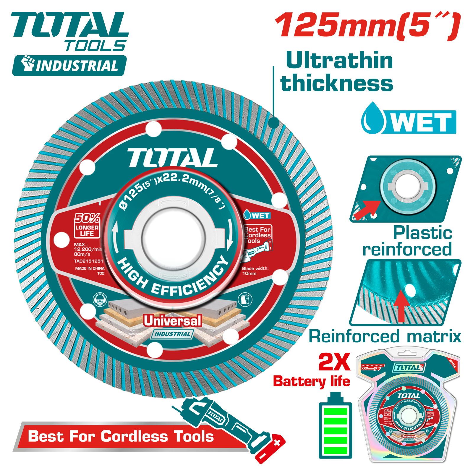 Диск алмазный 125х10х22,2 мм TOTAL TAC2151251