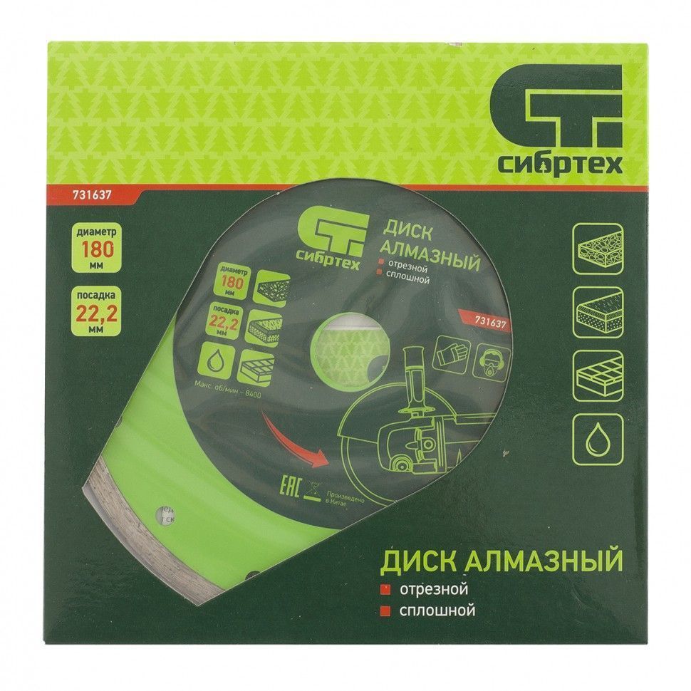 Диск алмазный отрезной сплошной, 180 х 22.2 мм, мокрая резка Сибртех 731637