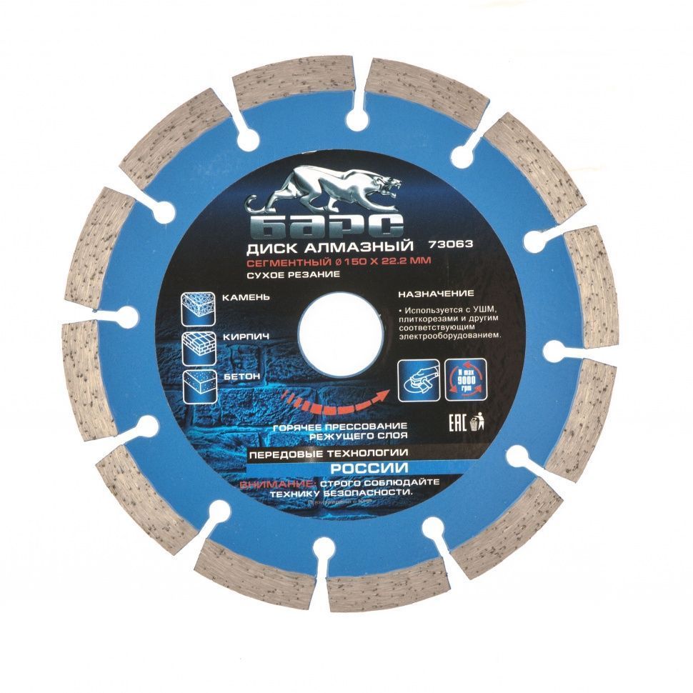 Диск алмазный Сегментный ф150х22,2мм, сухое резание БАРС 73063