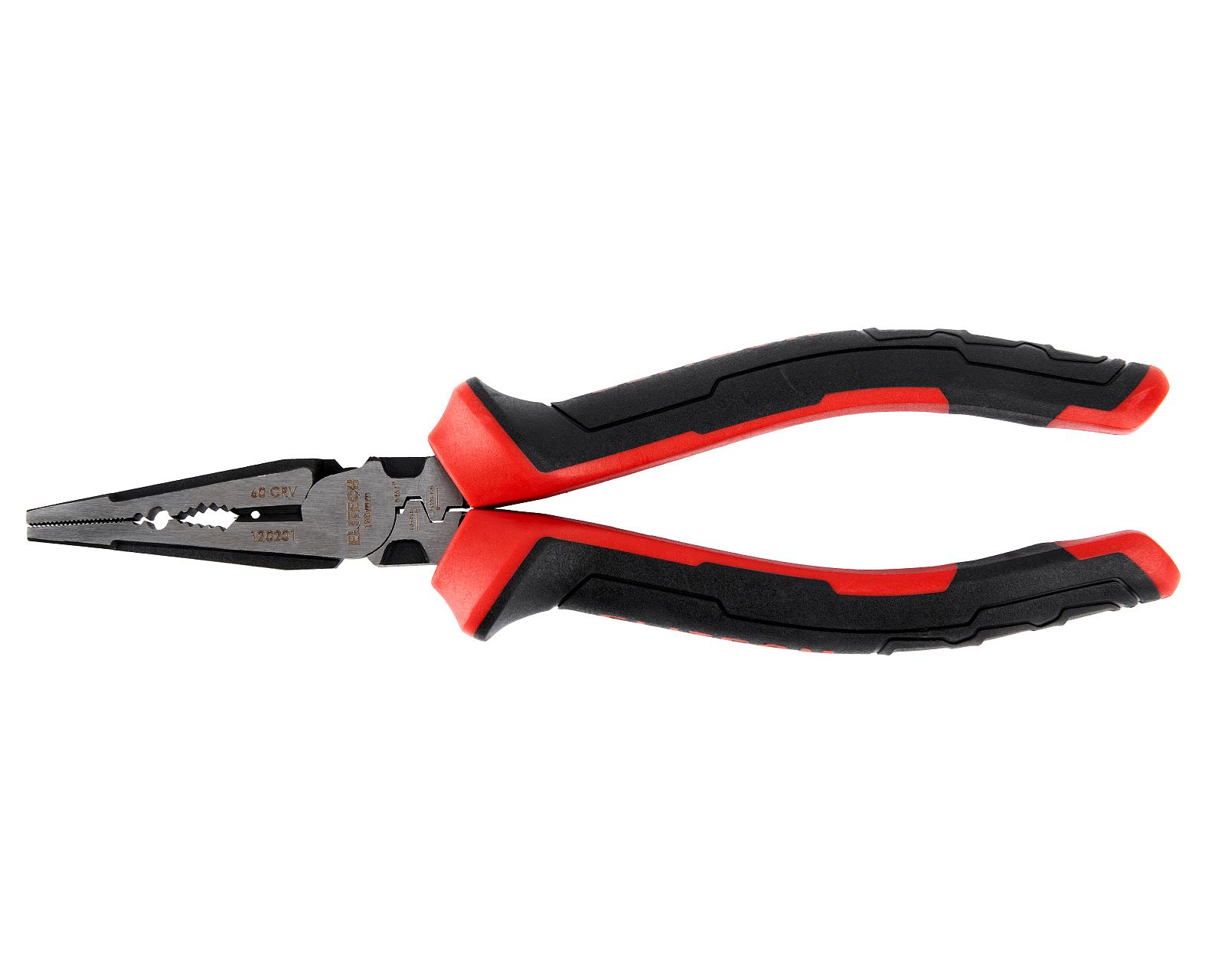 Длинногубцы длиной 180 мм из хромованадиевой стали твердостью в диапазоне 56-62 HRC, с эргономичными ручками с противоскользящим TPR-покрытием для удобства при работе.