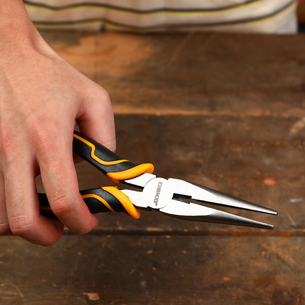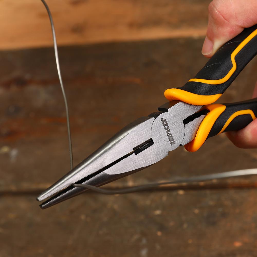 - Длинногубцы DEKO DKP08, 200 мм – это шарнирно-губцевый инструмент, предназначенный для работы в труднодоступных местах и удержания мелких деталей.