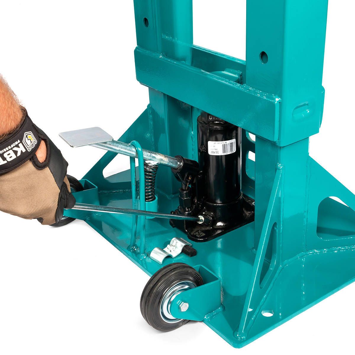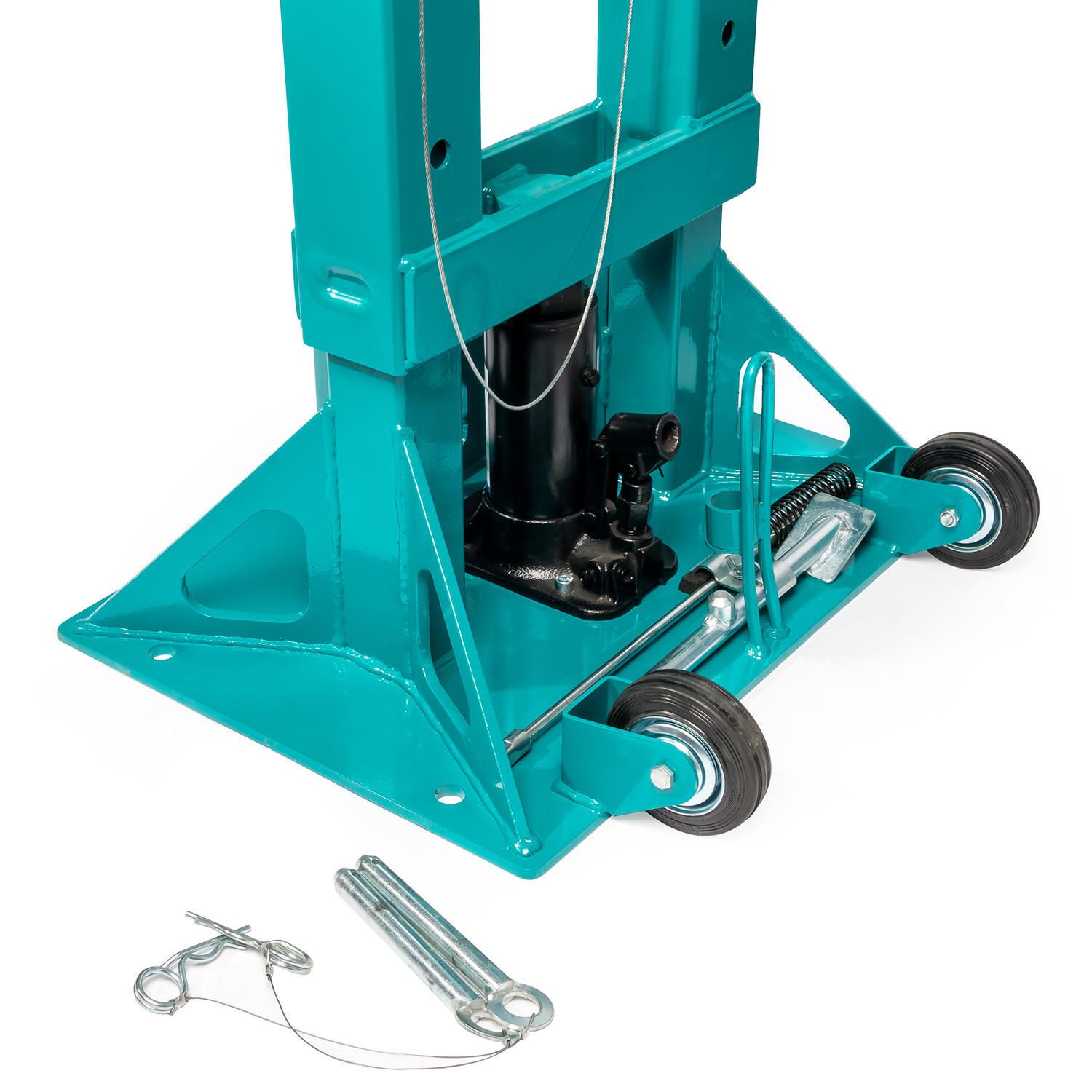 - Стойки домкрата оснащены колесами для более удобного перемещения по поверхности