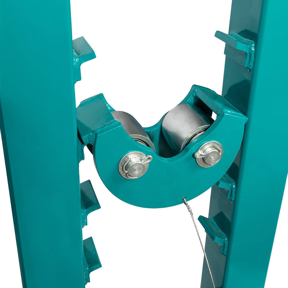 - Стойки имеют 7 фиксированных положений высоты оси, что позволяет работать с кабельными катушками различного диаметра