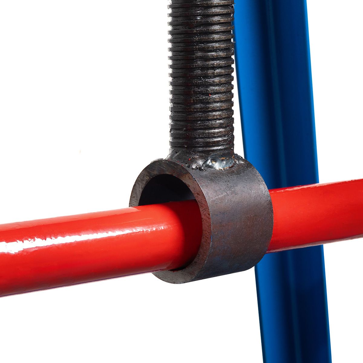 - Ось домкрата выполнена из цельнометаллического прутка и оснащена прижимными башмаками для предотвращения перемещения барабана по валу во время размотки кабеля