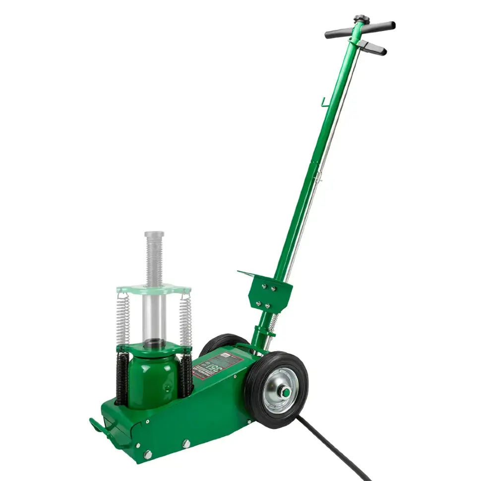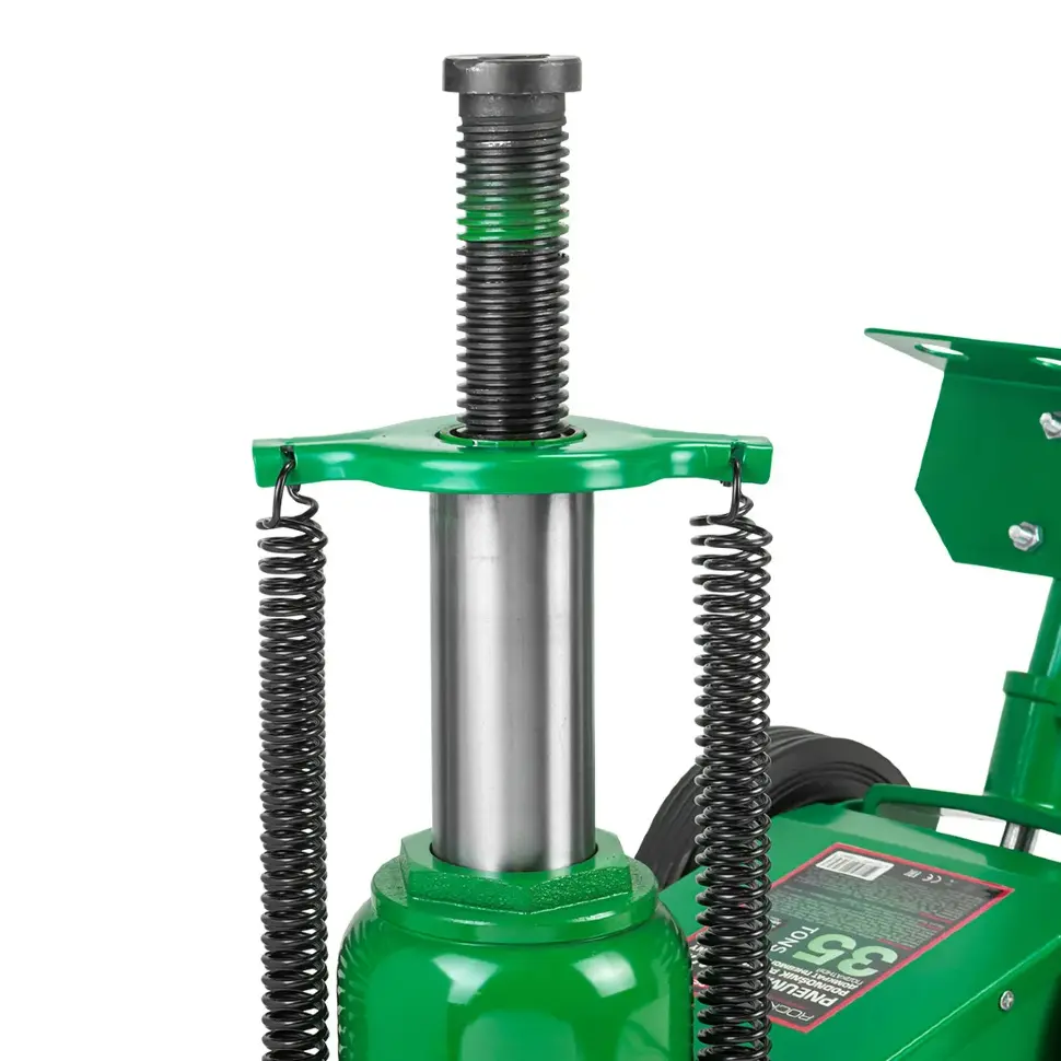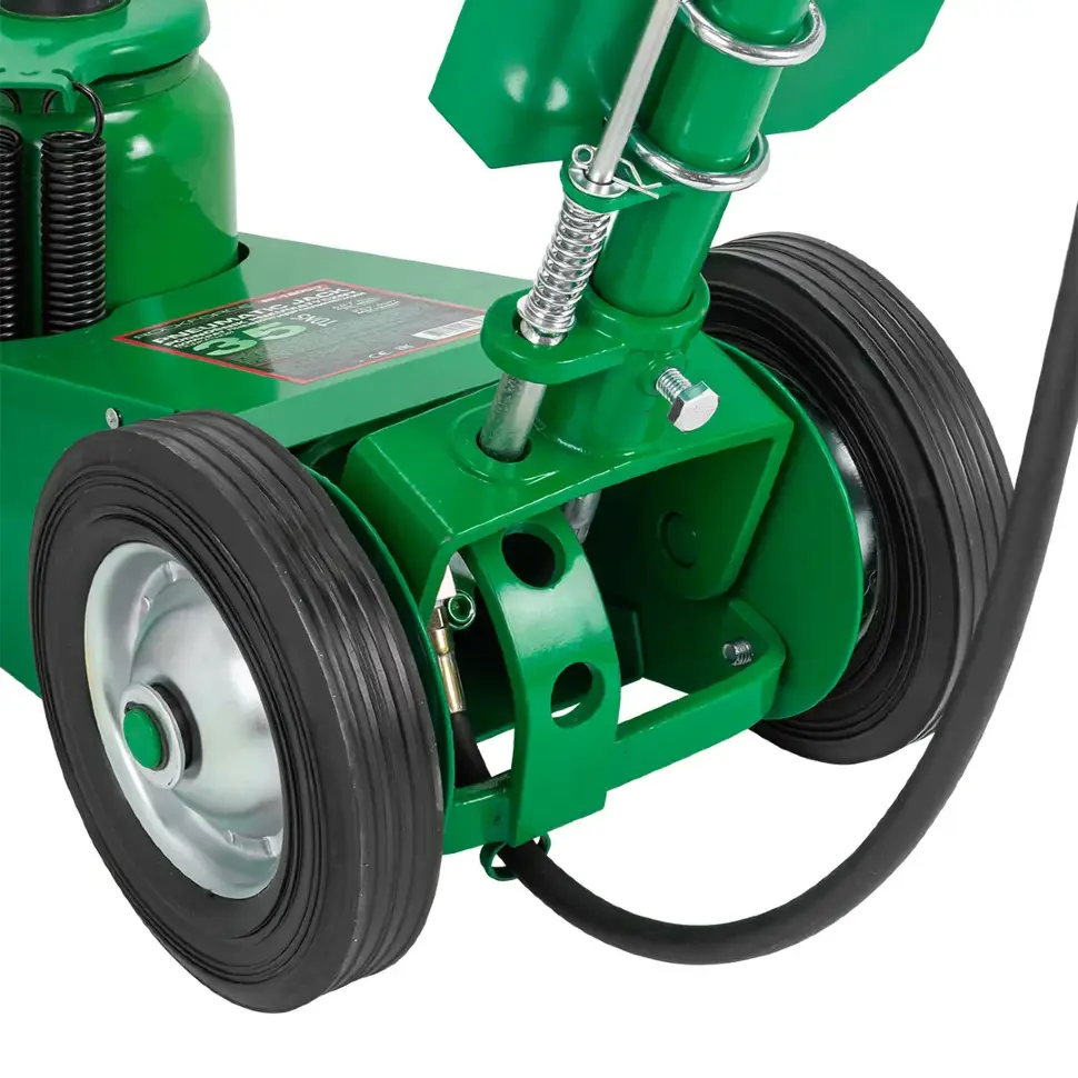 Пневмогидравлический привод обеспечивает быстрый и лёгкий подъём при минимальных физических усилиях. Подкатная конструкция упрощает установку домкрата под транспортным средством, а прочная стальная рама гарантирует устойчивость и долговечность. Высота подъёма регулируется, что позволяет работать с техникой разного клиренса.
