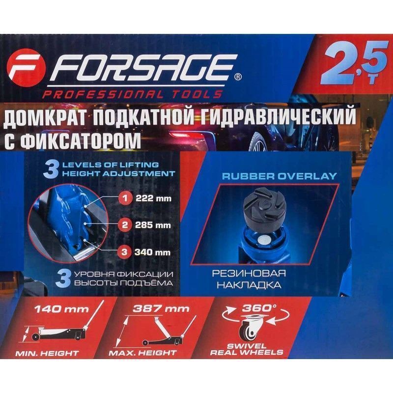 Домкрат подкатной гидравлический 2.5т (h min 140мм, h max 387мм) с фиксацией и резиновой накладкой Forsage F-TH22501CB