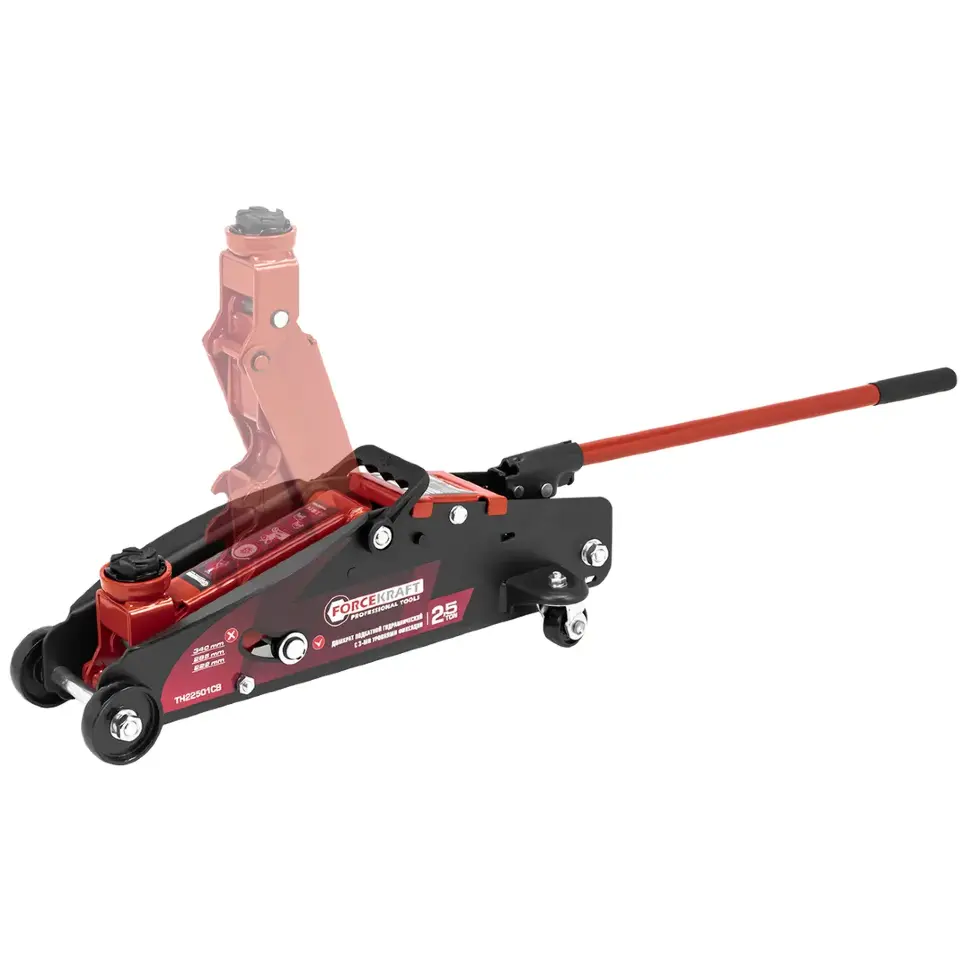 Домкрат подкатной гидравлический 2.5 т с фиксацией (h min 140 мм, h max 387 мм) FORCEKRAFT FK‑TH22501CB — надёжное подъёмное оборудование для обслуживания автомобилей. Предназначен для подъёма машин массой до 2,5 тонн, подходит для использования в гараже, на шиномонтаже и в автосервисе.