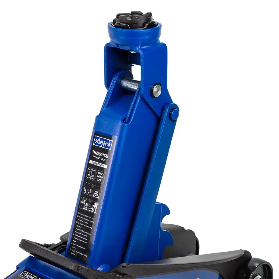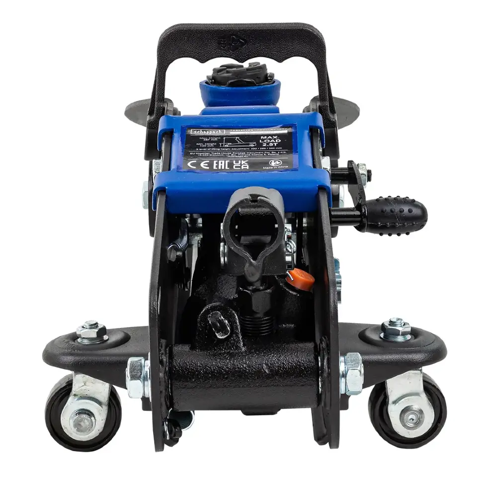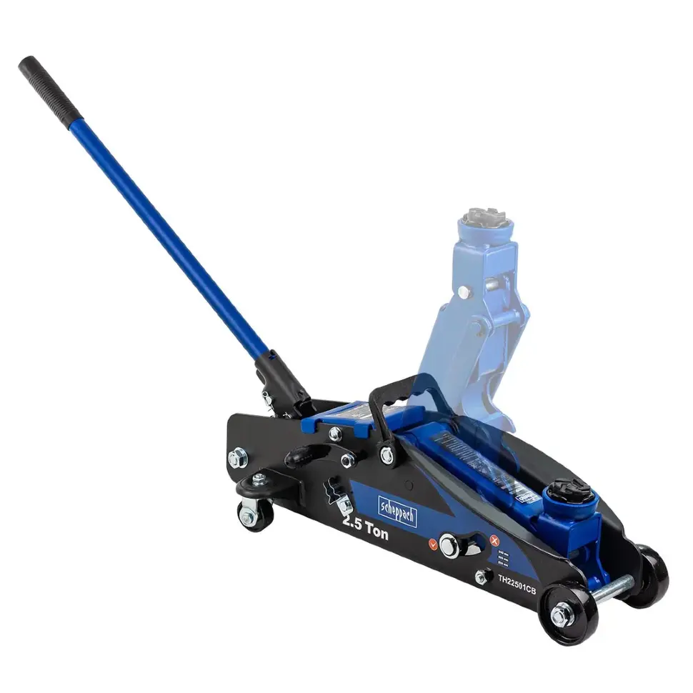 Домкрат подкатной гидравлический 2.5 т с фиксацией (h min 140 мм, h max 387 мм) Scheppach Sch‑TH22501CB — надёжное подъёмное оборудование для обслуживания автомобилей. Предназначен для подъёма машин массой до 2,5 тонн, подходит для использования в гараже, на шиномонтаже и в автосервисе.