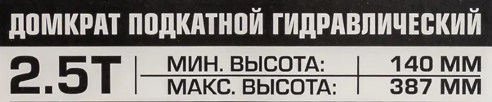 Минимальная высота подхвата составляет 140 мм, максимальная высота подъёма — 387 мм. Конструкция оснащена фиксатором, который обеспечивает дополнительную безопасность при работе.