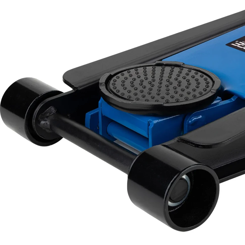 Домкрат подкатной гидравлический усиленный низкопрофильный 4т (высота подхвата-100мм; высота подъема - 510мм, 2 поршня, удлиненная рукоятка)