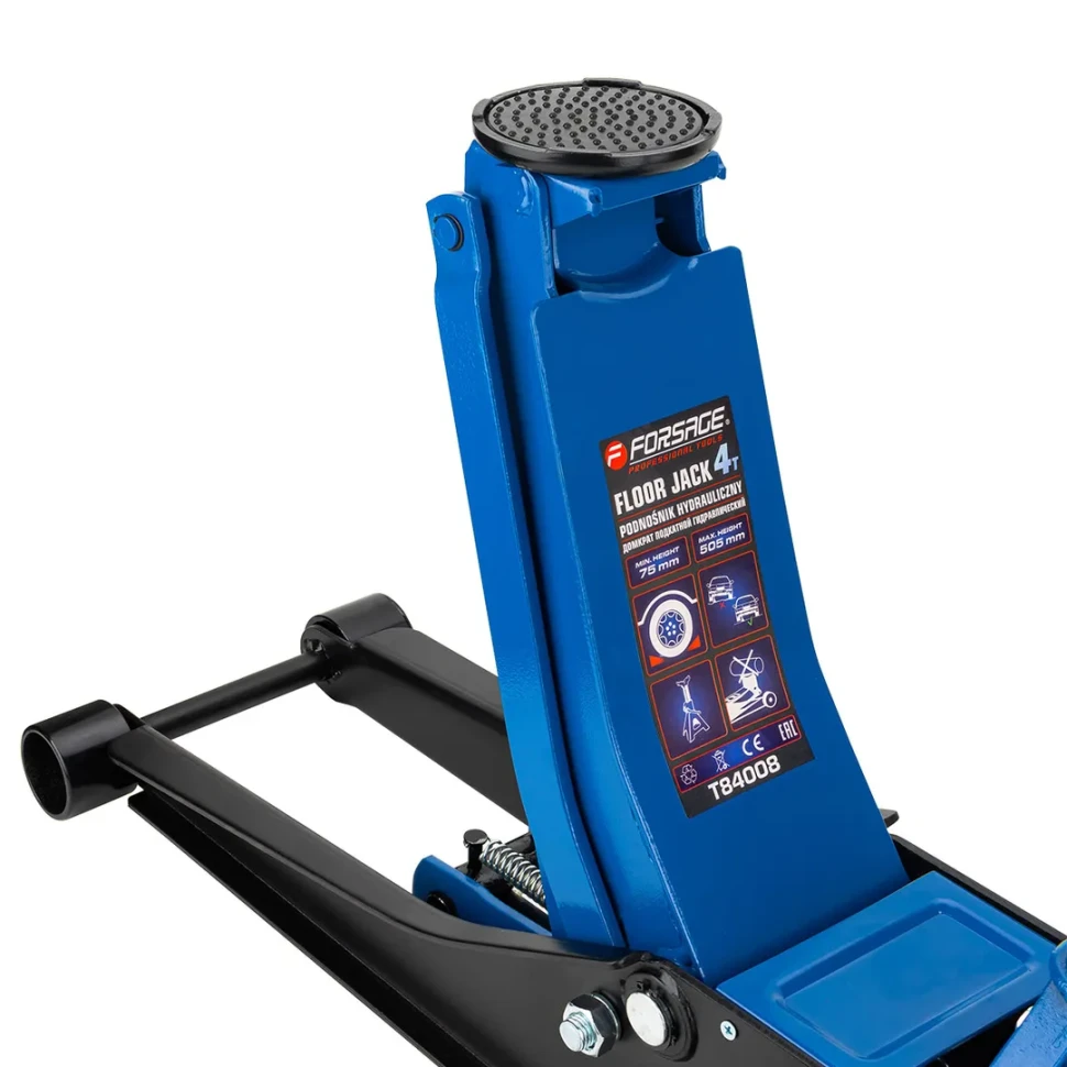 Профессиональный и доступный по стоимости подкатной домкрат Forsage T84008 станет незаменимым помощником в ремонте и обслуживании автомобиля. Модель одинаково эффективна в использовании как в частном гараже, так и в крупном автосервисе с интенсивными нагрузками. Продолжительный срок службы обусловлен качественным исполнением конструкции, наличием многоуровневой защиты от возможных поломок и несложным управлением.