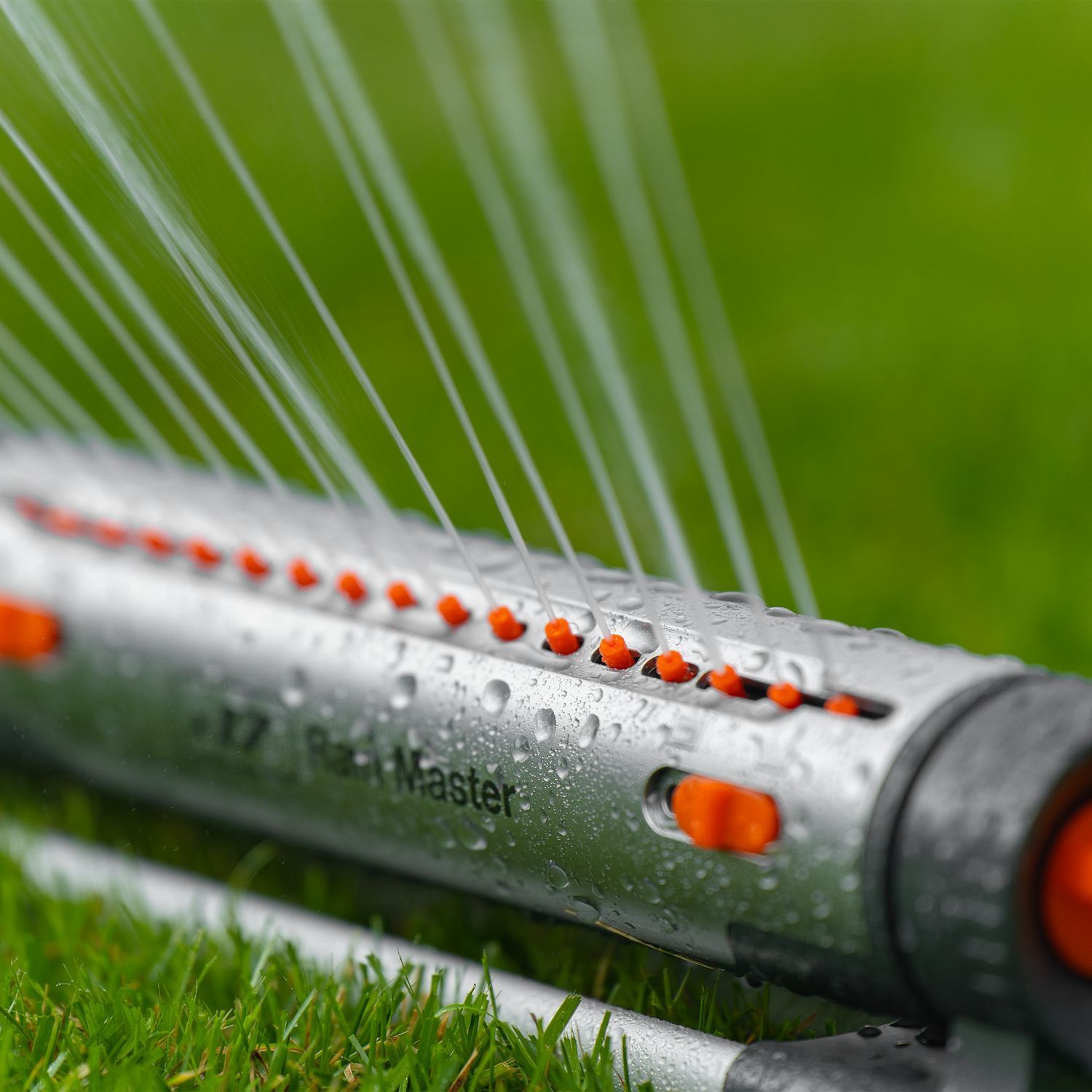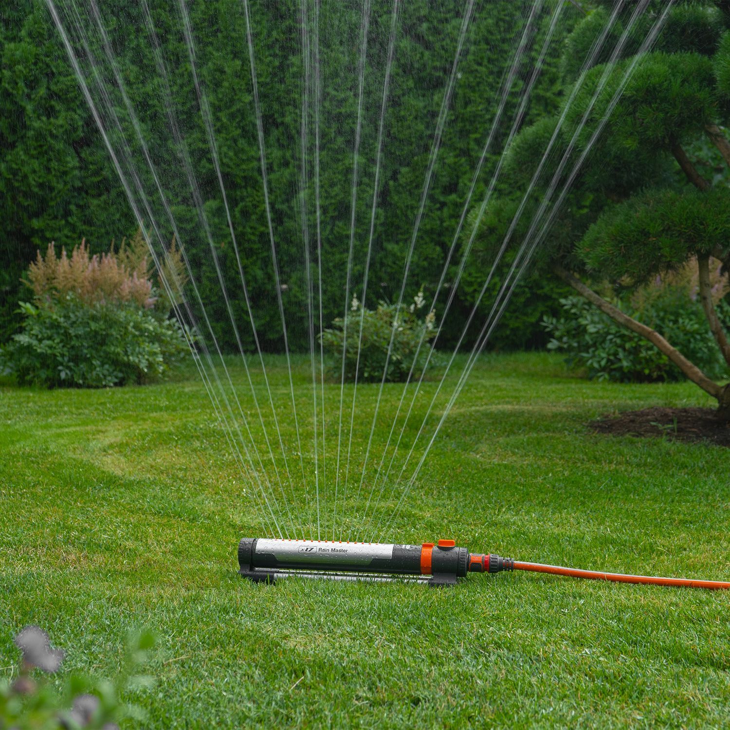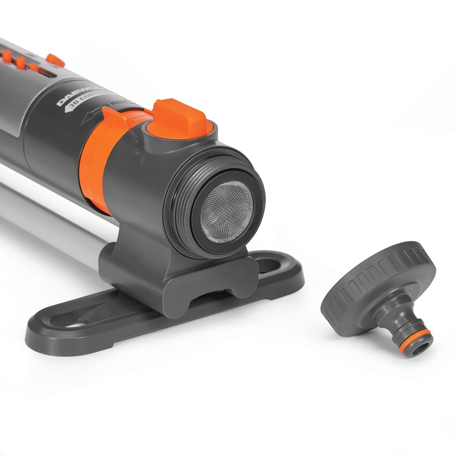 - Система 3D CONTROL. Удобные регуляторы позволяют настроить угол наклона форсунок, направление их движения и дальность струи, чтобы полить определенный сектор или заданную площадь от 90м² до 320м².