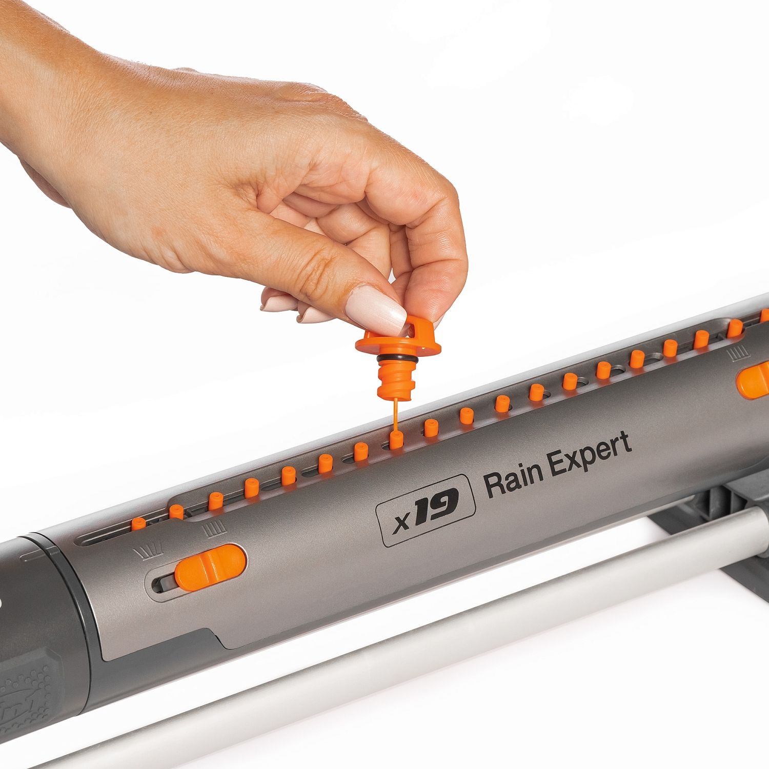 - 2 режима работы. 19 силиконовых форсунок обеспечивают эффективный и равномерный полив по всей заданной площади. Переключая дождеватель на 7 форсунок режима Распыление, можно производить бережное орошение хрупких растений.