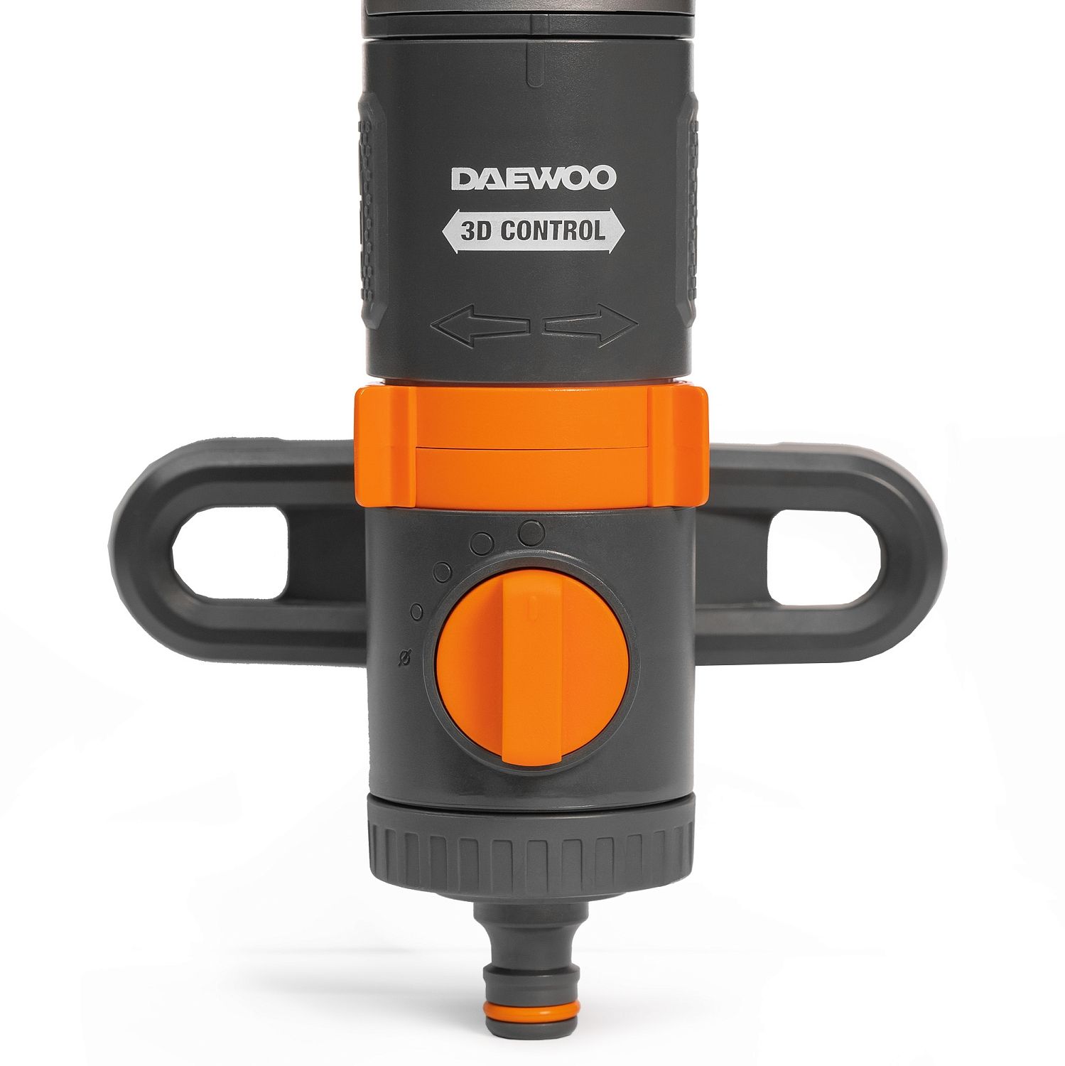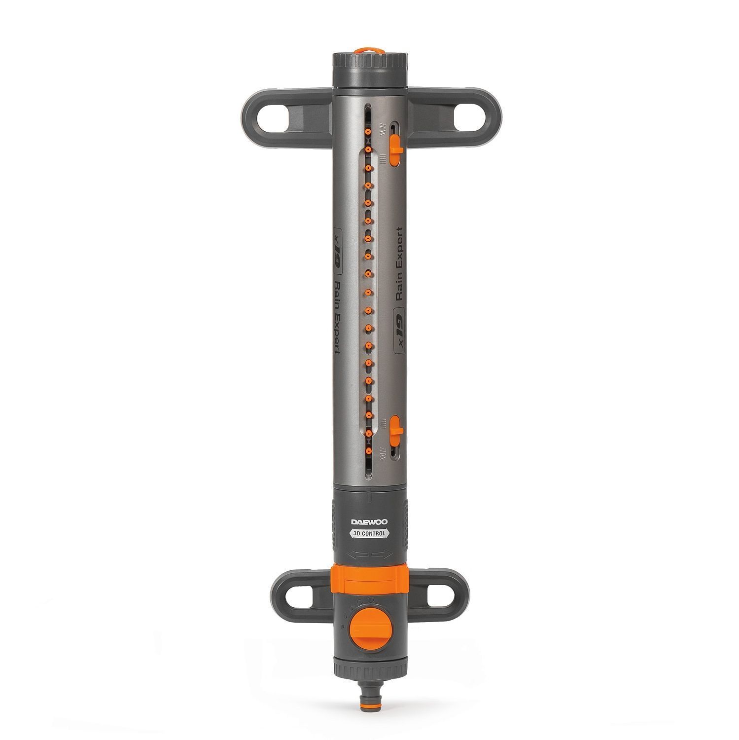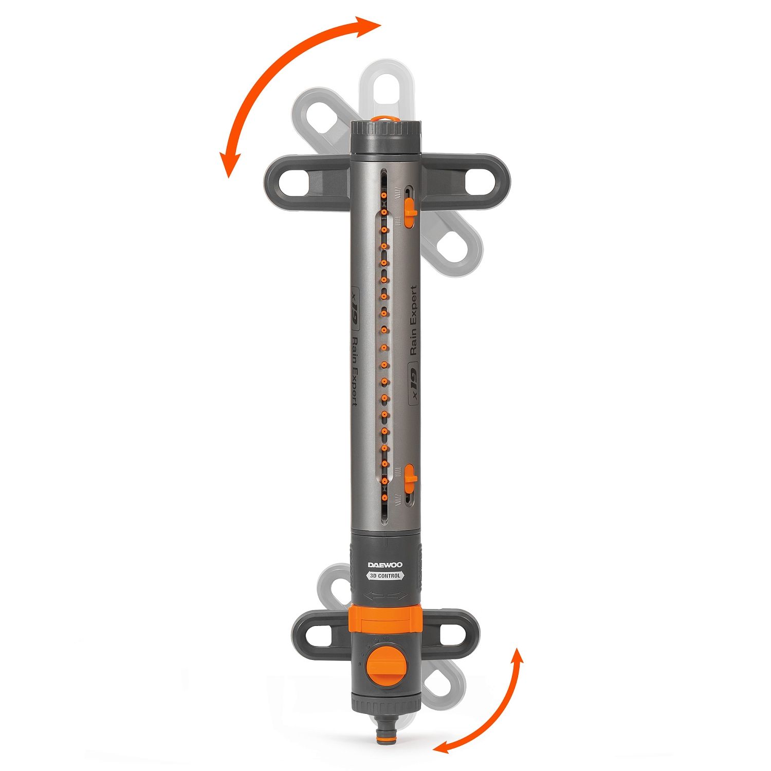- Система 3D CONTROL. Удобные регуляторы позволяют настроить угол наклона форсунок, направление их движения и дальность струи, чтобы полить определенный сектор или заданную площадь от 90м² до 350м².