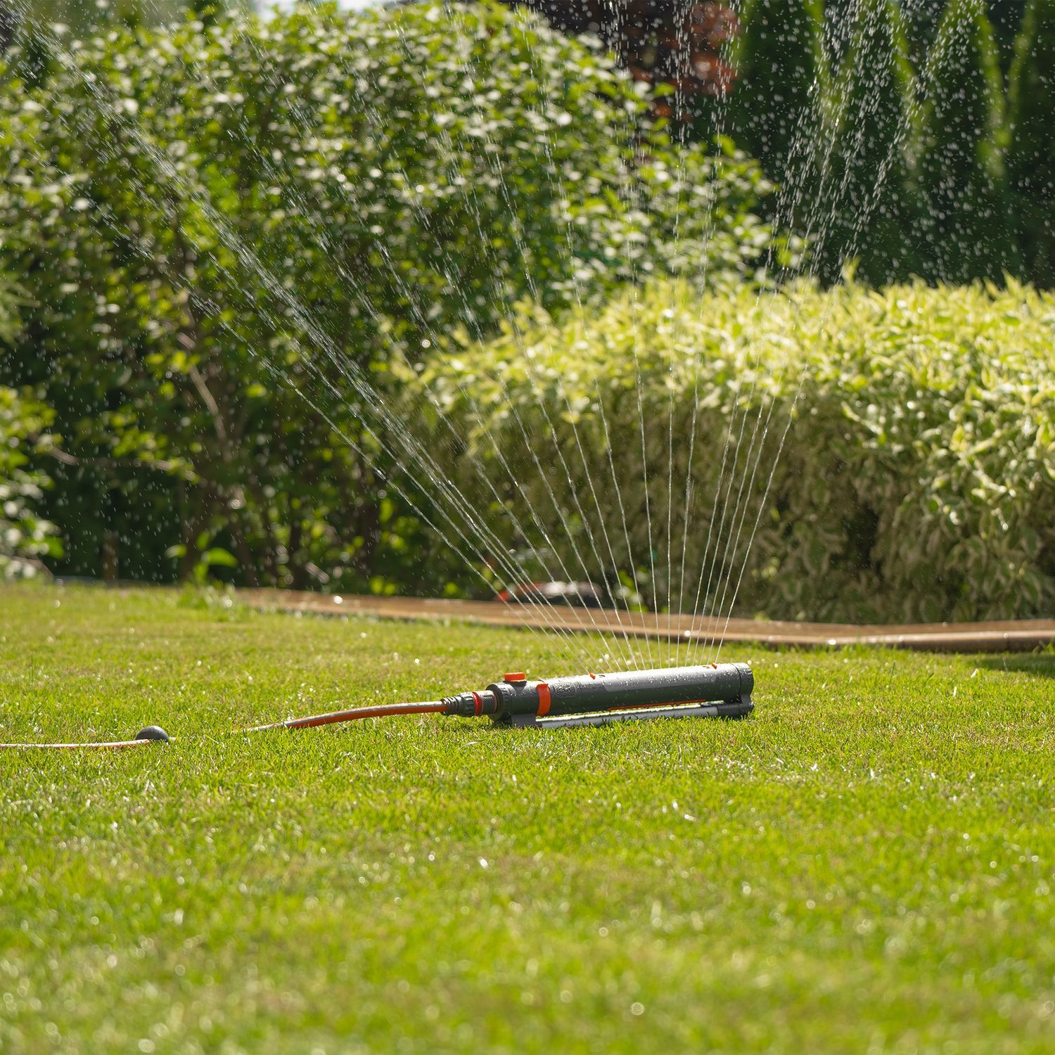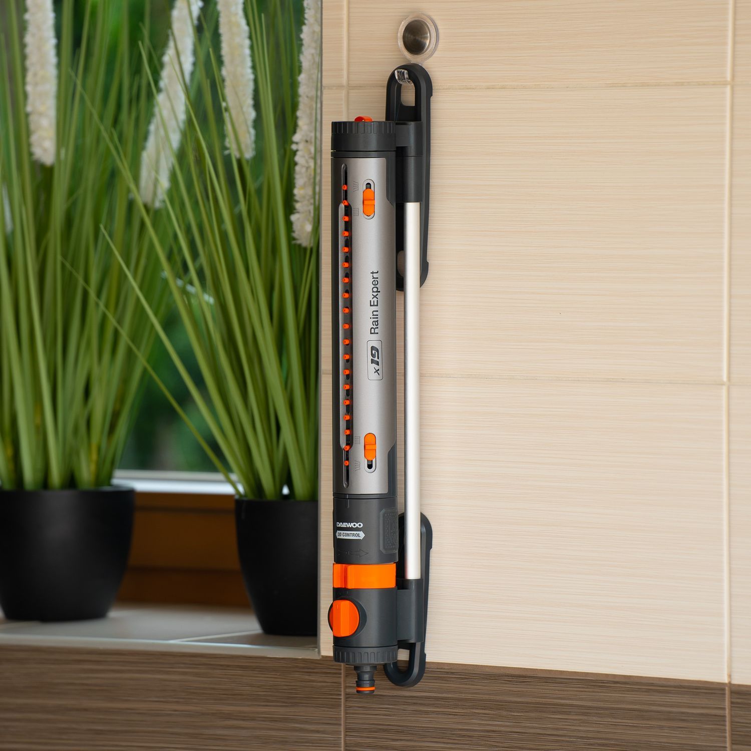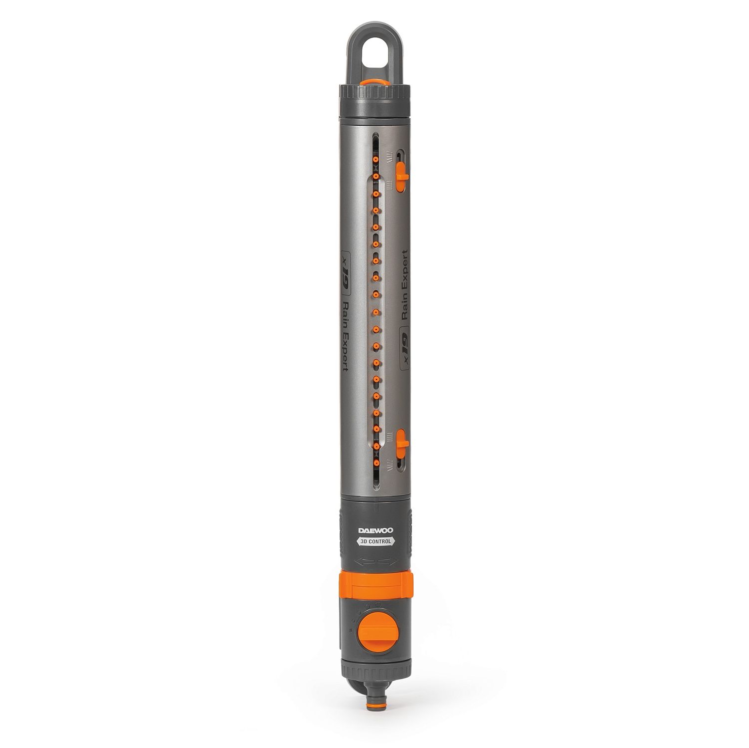 - Система 3D CONTROL. Удобные регуляторы позволяют настроить угол наклона форсунок, направление их движения и дальность струи, чтобы полить определенный сектор или заданную площадь от 90м² до 350м².