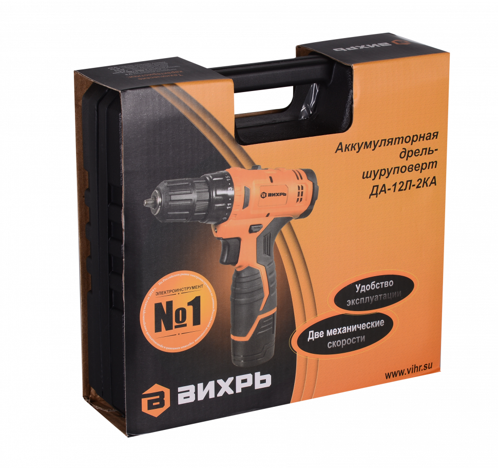 Дрель-шуруповерт аккумуляторная, 12В, 2 АКБ 1.5 А/ч, Вихрь ДА-12Л-2КА