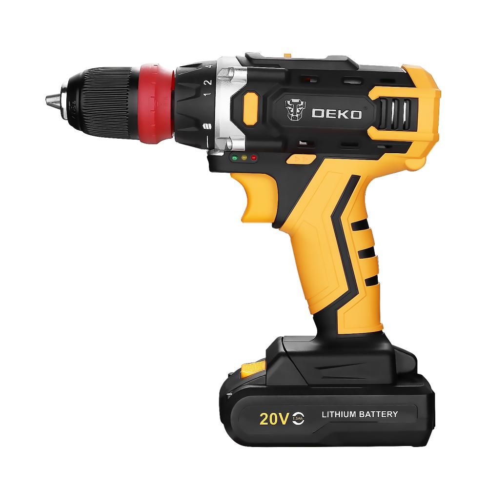 Дрель-шуруповерт аккумуляторная, 20В, 1АКБ 1,5 А/ч, DEKO DKCD20FU-Li SET 1