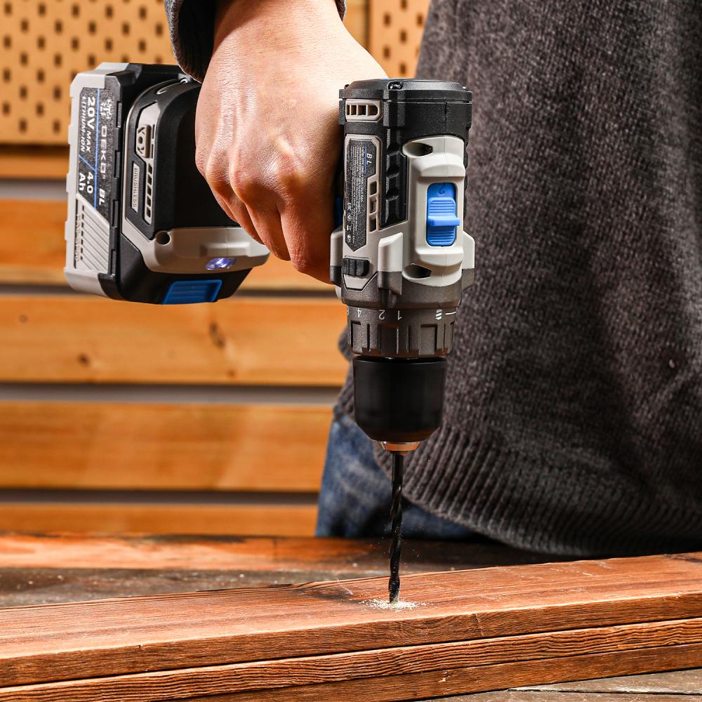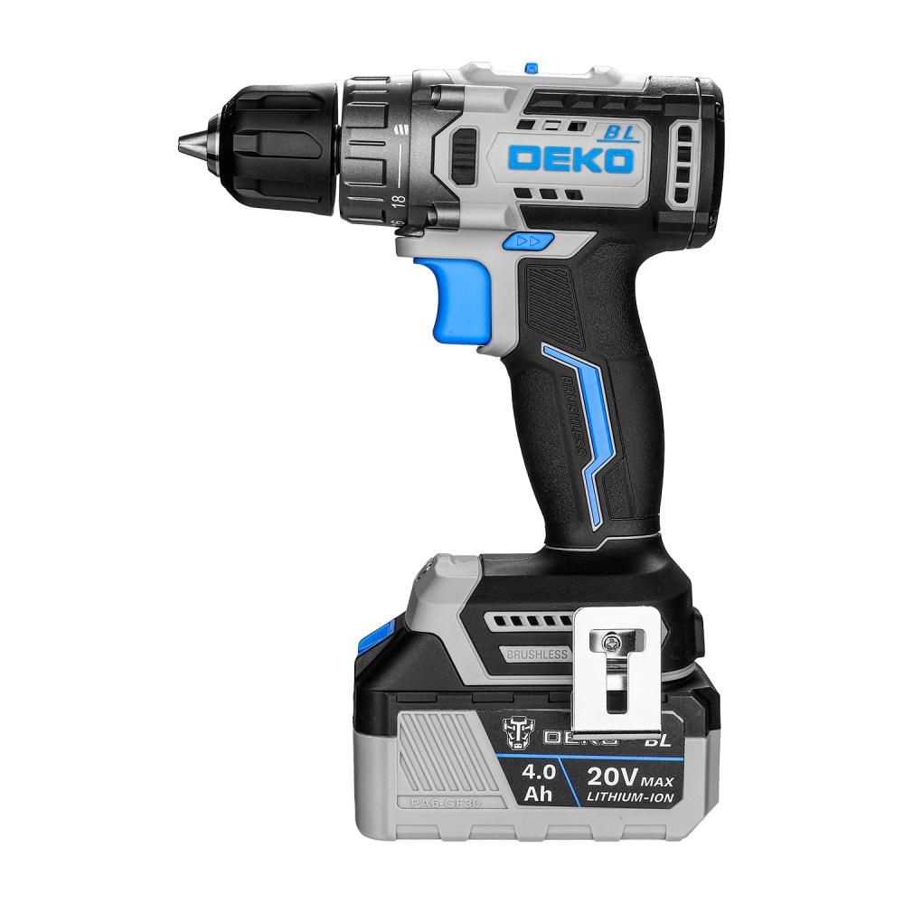 - Дрель-шуруповерт аккумуляторная бесщеточная DEKO Loner 20V ONE + имеет бесщёточный двигатель, что обеспечивает эффективность и производительность.
