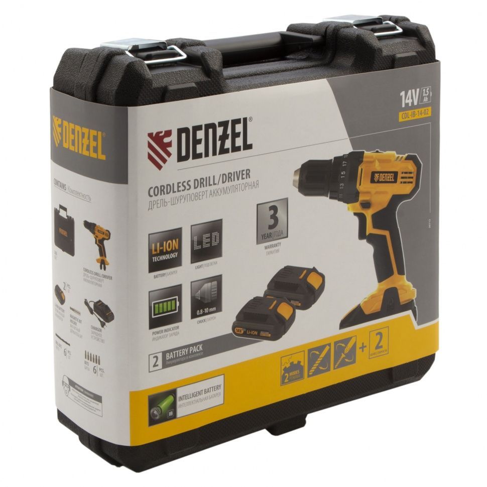 Дрель-шуруповерт аккумуляторная CDL-IB-14-02, Li-Ion, 14 В, 1.5 Ач, 2 акк. DENZEL 26112