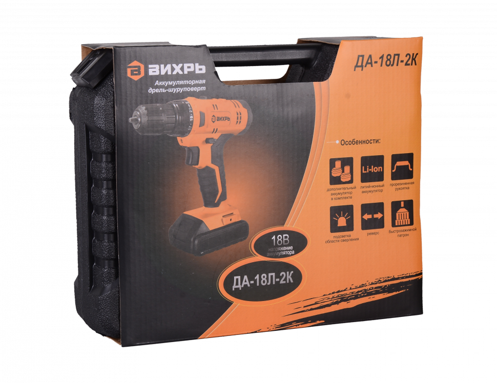 Дрель-шуруповерт аккумуляторная, 18В, 2 АКБ 2.0 А/ч, ДА-18Л-2К