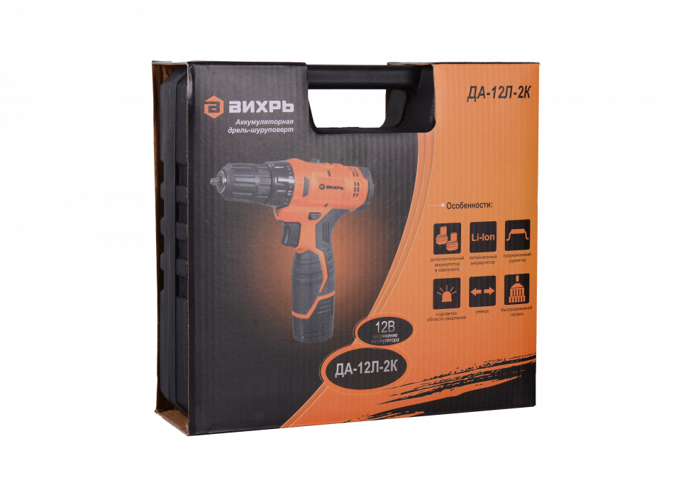 Дрель-шуруповерт аккумуляторная, 12В, 2 АКБ 2.0 А/ч, Вихрь ДА-12Л-2К