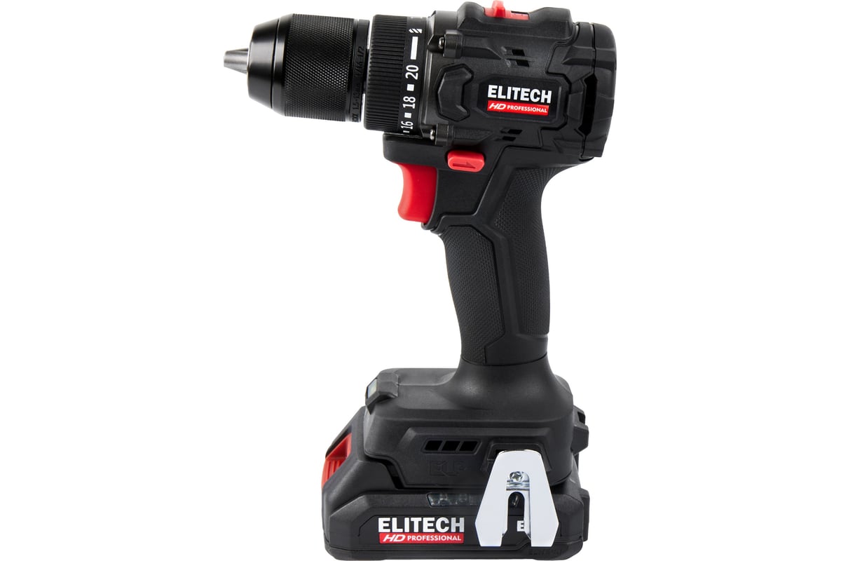 ELITECH HD PROFESSIONAL - cоздан для регулярного использования в тяжелых условиях. Каждый инструмент в этой линейке характеризуется высоким ресурсом, мощностью и защитой от агрессивной среды. Продуманная конструкция узлов обеспечивает долгий срок службы изделий и легкость их обслуживания. Современный дизайн и превосходная эргономика превращают любой рабочий процесс в удовольствие. Аккумуляторная дрель-шуруповерт ELITECH HD CD 20SL2 с максимальным крутящим моментом 60 Нм предназначена для сверления отверстий в черных и цветных металлах, дереве и производных материалах на его основе (фанера, ДСП, OSB, МДФ и подобные), различных видов пластика. Дрель оснащена функцией защиты от отдачи (kickback protection) - выключении двигателя при резком провороте инструмента вокруг оси вращения патрона или блокировке сверла в заготовке. Примером использования является проведение отделочных и строительных работ, установка легкого оборудования, сборка мебели, монтаж кухонь, использование в мастерской и в домашнем хозяйстве.