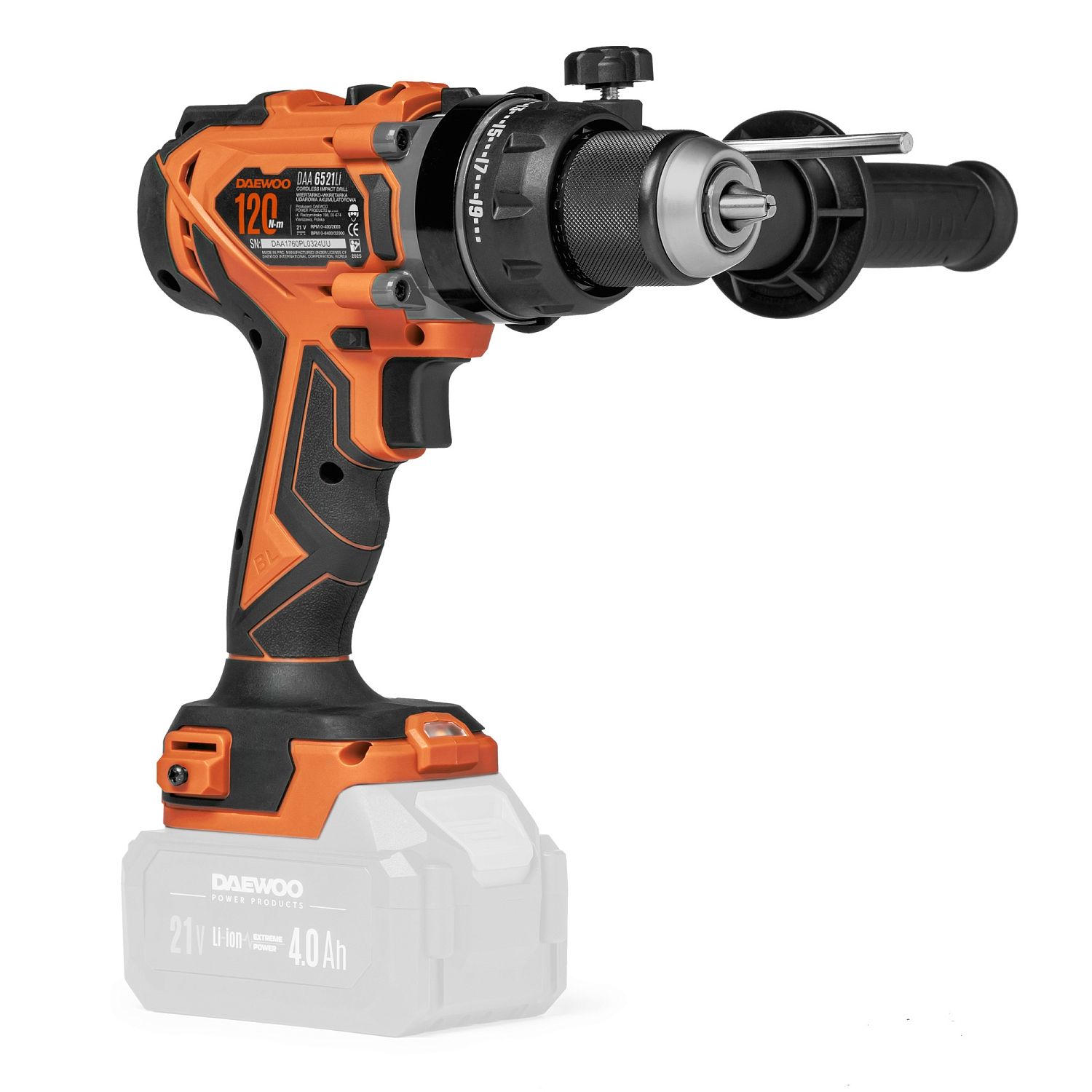 Дрель-шуруповерт ударная аккумуляторная , 21В, БЕЗ АКБ, 120 Нм, 2000 об.мин, DAEWOO DAA 6521Li