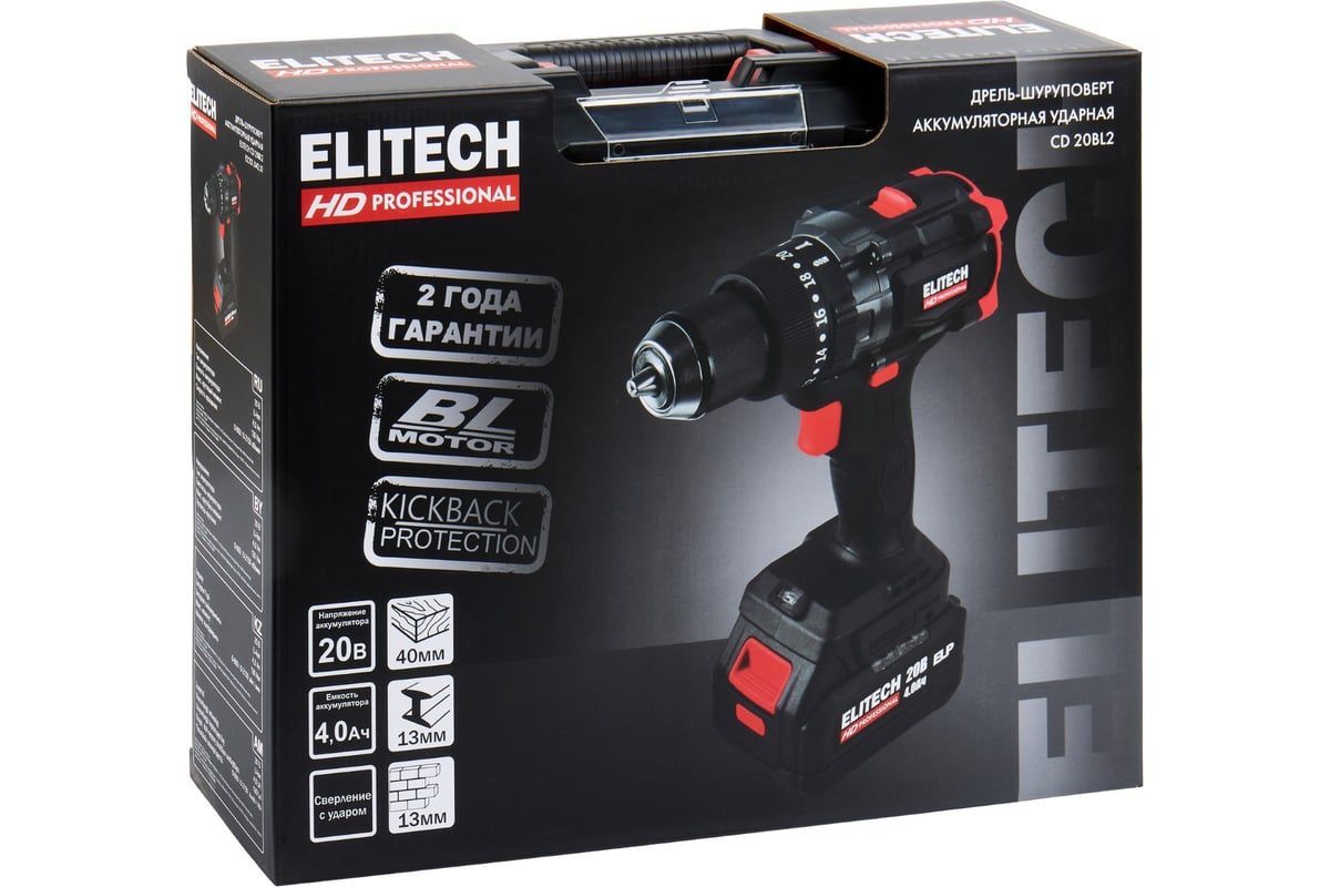 Дрель-шуруповерт ударная CD 20BL2 аккумуляторная ,HD ,20В, 1АКБ 4.0 А/ч, 130 Нм, BL , кейс, ELITECH 205727