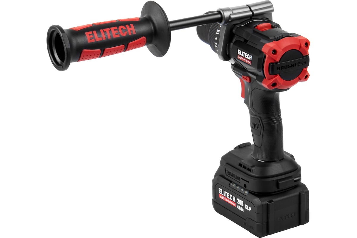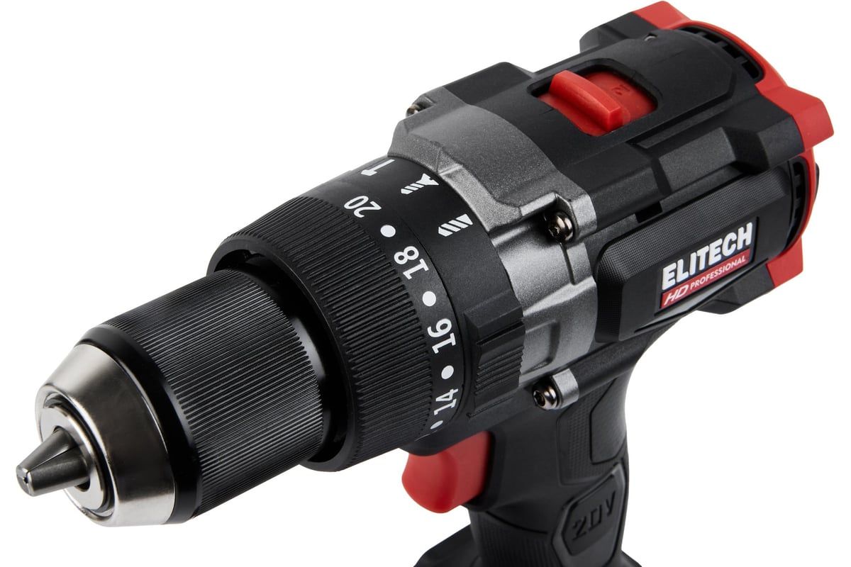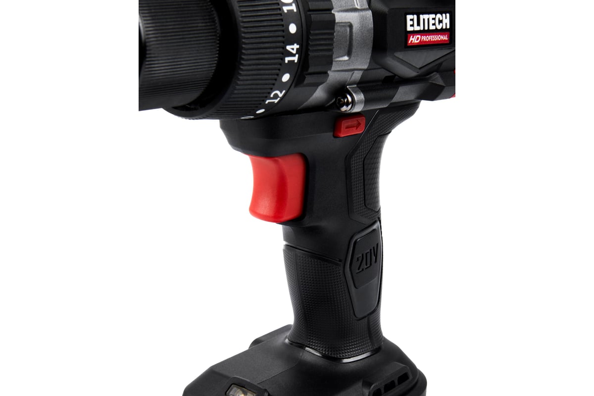 ELITECH HD PROFESSIONAL - cоздан для регулярного использования в тяжелых условиях. Каждый инструмент в этой линейке характеризуется высоким ресурсом, мощностью и защитой от агрессивной среды. Продуманная конструкция узлов обеспечивает долгий срок службы изделий и легкость их обслуживания. Современный дизайн и превосходная эргономика превращают любой рабочий процесс в удовольствие. Аккумуляторная ударная дрель-шуруповерт ELITECH HD CD 20BL2 (E2201.042.01) с максимальным крутящим моментом 130 Нм предназначена для сверления отверстий в черных и цветных металлах, дереве и производных материалах на его основе (фанера, ДСП, OSB, МДФ и подобные), различных видах пластика, сверления с ударом в кирпиче, камне и для установки крепежа. Дрель оснащена функцией защиты от отдачи (Anti-kickback) - выключении электродвигателя при резком провороте инструмента вокруг оси вращения патрона или блокировке сверла в заготовке.