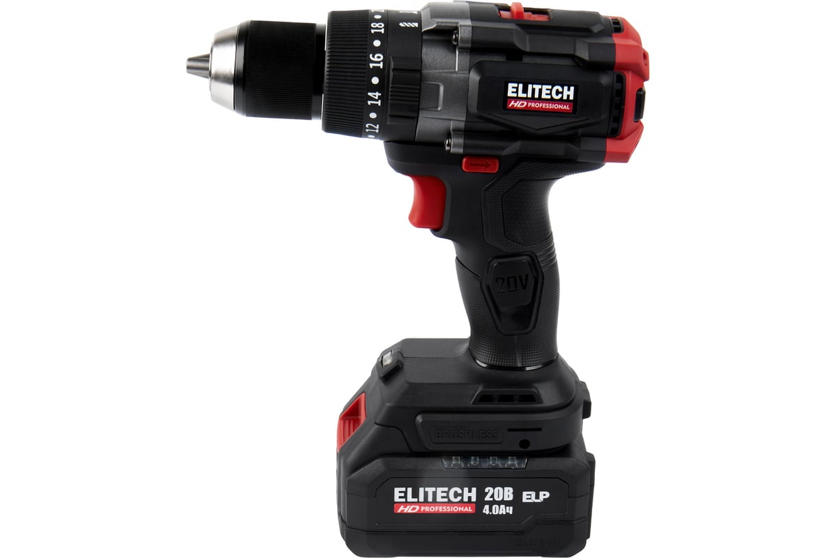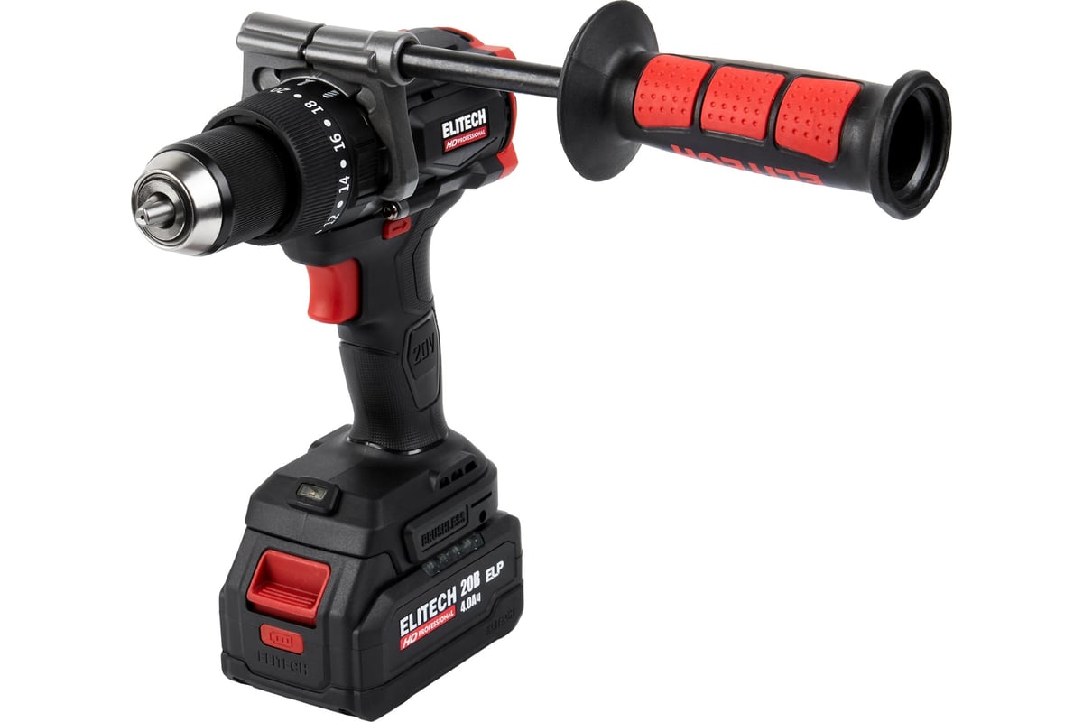 ELITECH HD PROFESSIONAL - cоздан для регулярного использования в тяжелых условиях. Каждый инструмент в этой линейке характеризуется высоким ресурсом, мощностью и защитой от агрессивной среды. Продуманная конструкция узлов обеспечивает долгий срок службы изделий и легкость их обслуживания. Современный дизайн и превосходная эргономика превращают любой рабочий процесс в удовольствие. Аккумуляторная ударная дрель-шуруповерт ELITECH HD CD 20BL2 (E2201.042.02) с максимальным крутящим моментом 130 Нм предназначена для сверления отверстий в черных и цветных металлах, дереве и производных материалах на его основе (фанера, ДСП, OSB, МДФ и подобные), различных видах пластика, сверления с ударом в кирпиче, камне и для установки крепежа. Дрель оснащена функцией защиты от отдачи (Anti-kickback) - выключении электродвигателя при резком провороте инструмента вокруг оси вращения патрона или блокировке сверла в заготовке.