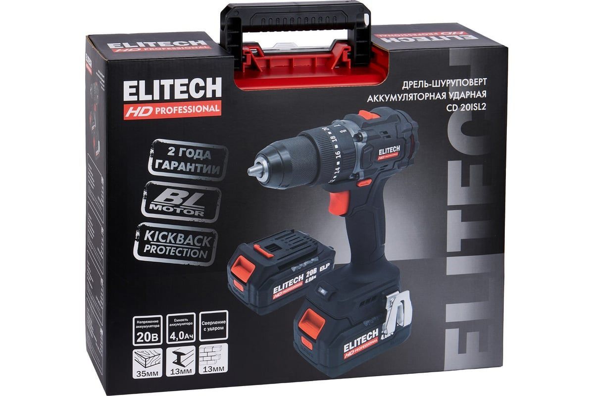 Дрель-шуруповерт ударная CD 20ISL2 аккумуляторная ,HD, 20В, 2АКБ 4.0 А/ч, 65 НМ, BL ,кейс, ELITECH 205723