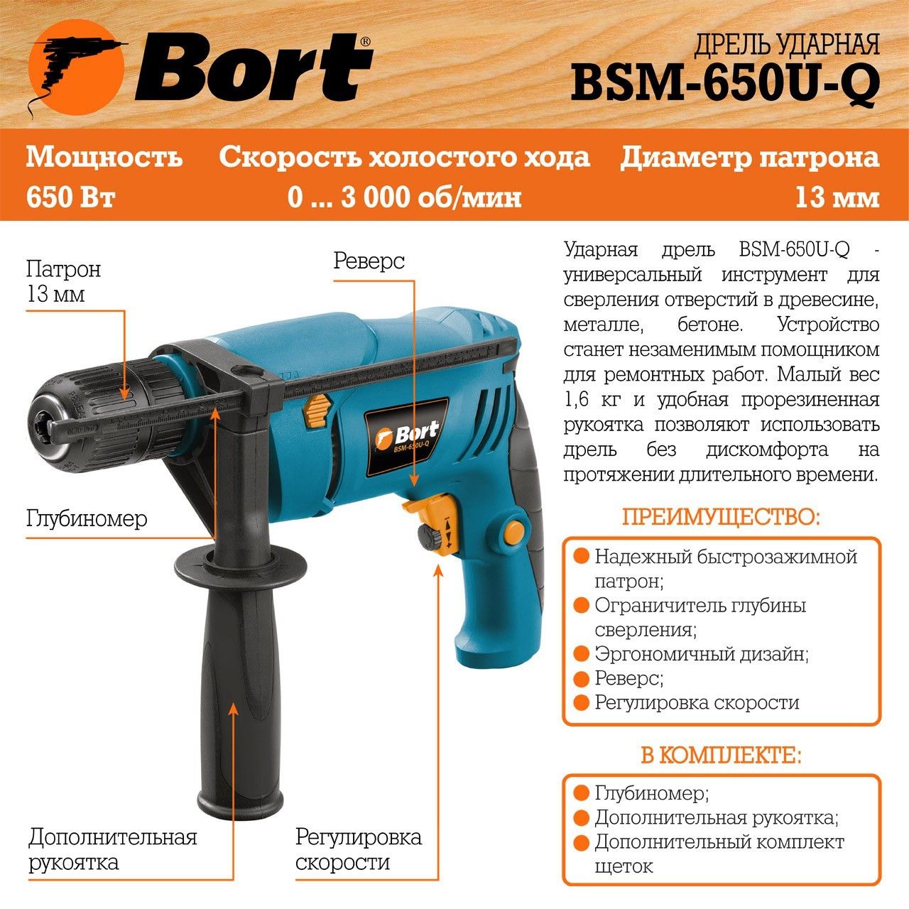 - Дрель ударная BSM-650U-Q - электроинструмент, удовлетворяющий практически все потребности по ремонту и обслуживанию хозяйства в доме и на даче.