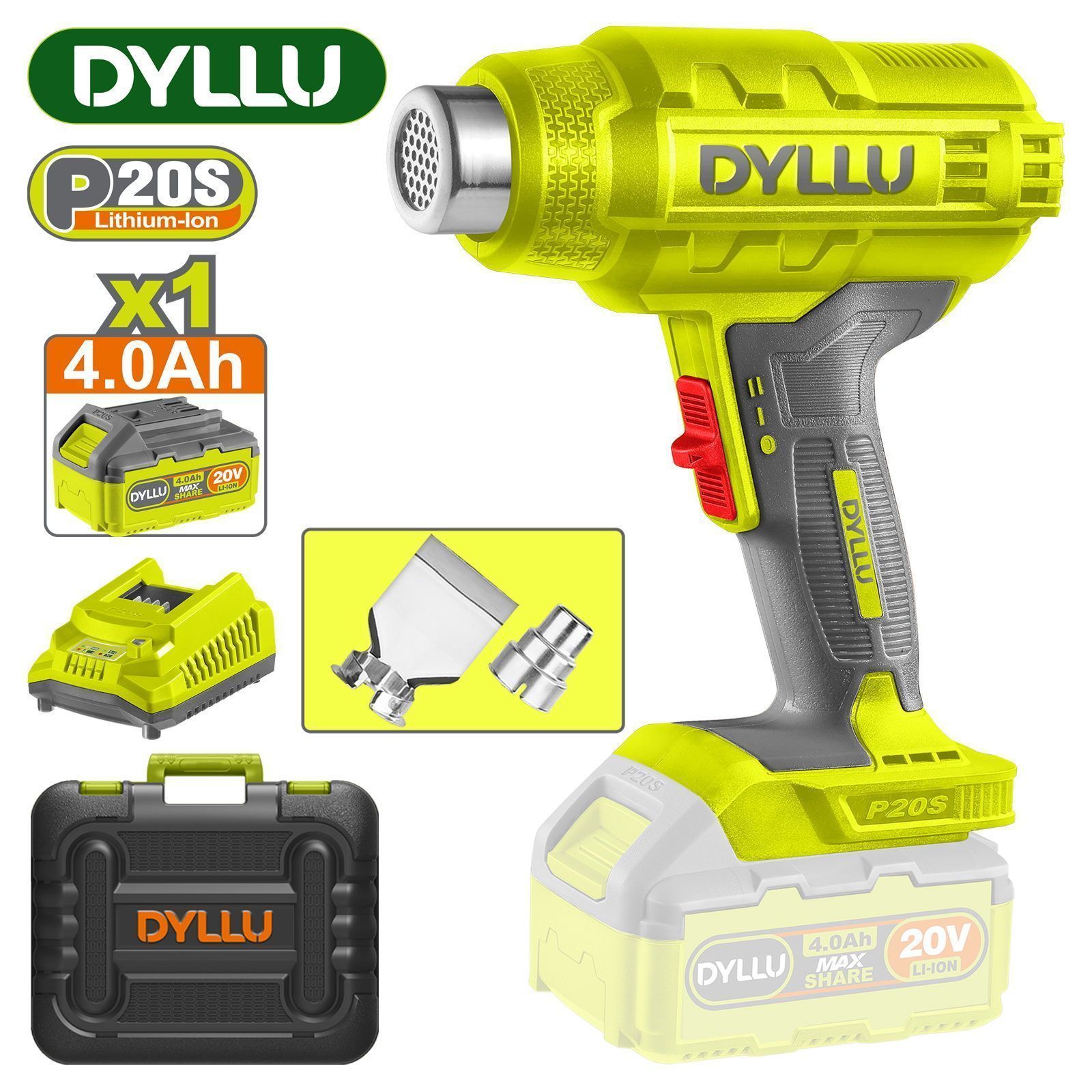 Фен промышленный электрический с насадками (220В, 50/60Гц, 2000Вт, 350-600С°, 300/500л/мин, 2 режима) WMC TOOLS WMC-DH-HG001