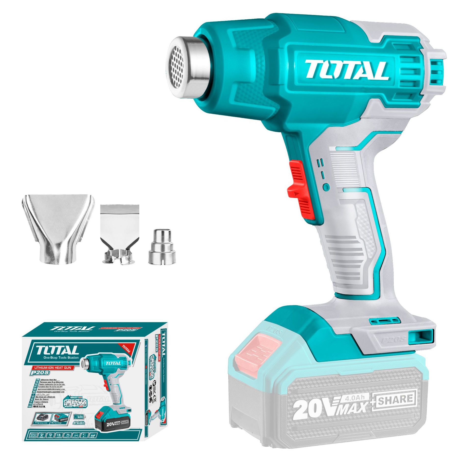 - Технический фен аккумуляторный TOTAL TBLI2002 – лучшее решение для рекламщиков, слесарей, автолюбителей, где нет возможности использовать розетку 220В.