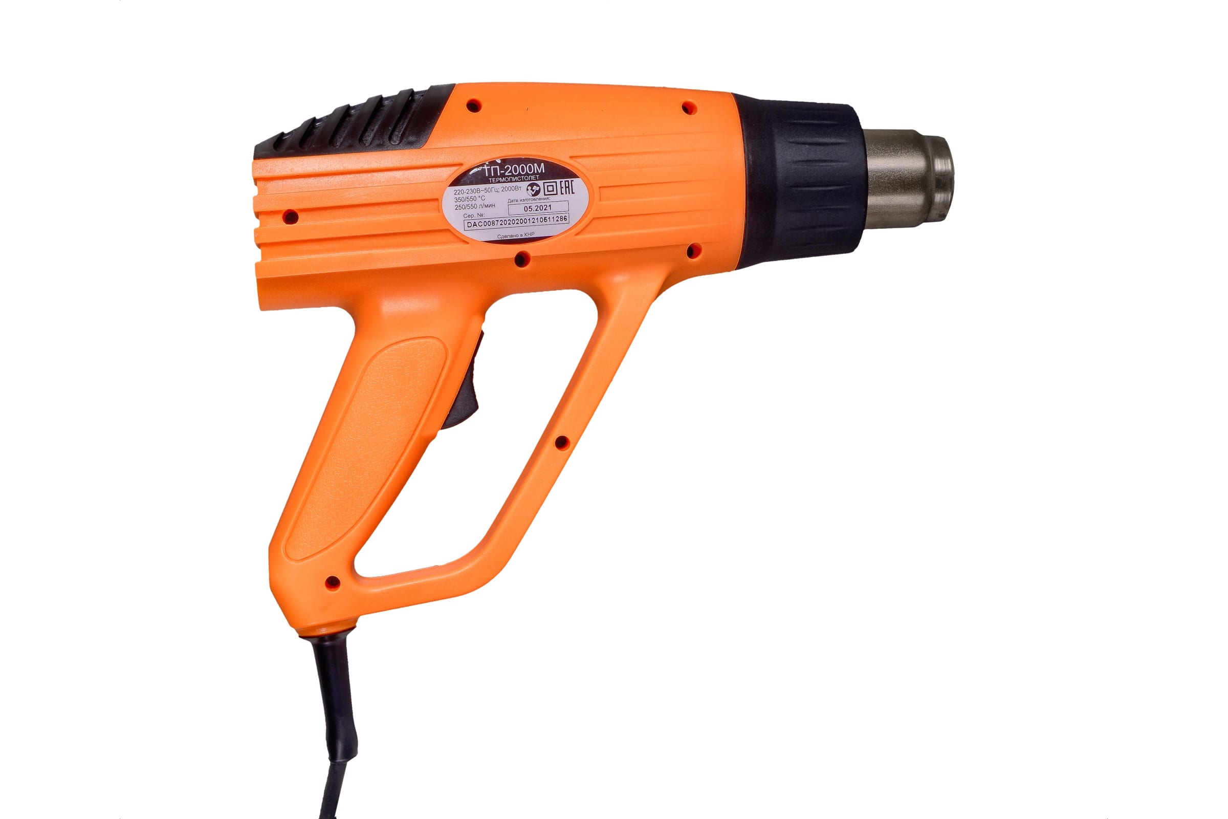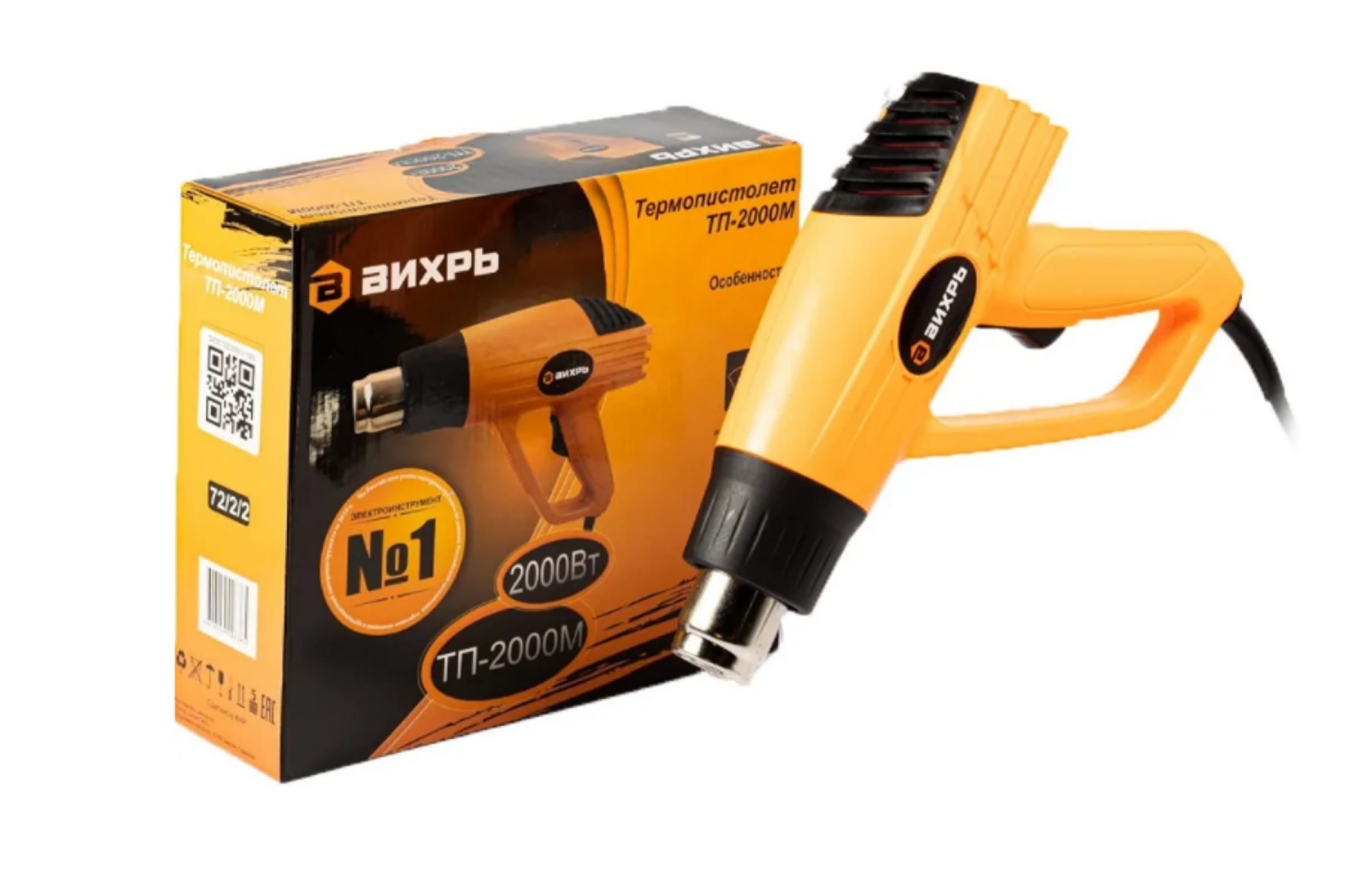 - Термопистолет Вихрь ТП-2000М – ручной электроинструмент, предназначенный для обработки горячим воздухом поверхностей и материалов, для удаления красок, формования и сварки пластмассы, нагревания термоусадочных труб; инструмент также подходит для пайки и лужения, размягчения клеевых соединений (швов), а также размораживания водопроводных труб.